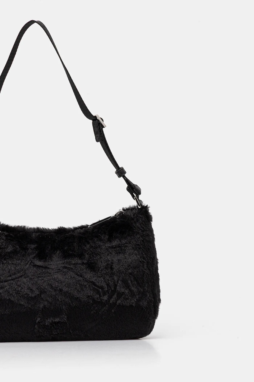 - Zapięcie na suwak. - Model z podszewką. - Nie mieści formatu A4. - Kieszonka wewnętrzna zapinana na suwak. - Torebka do noszenia w ręku lub na ramieniu. - Nieodpinany długi pasek z regulacją. - Długość minimalna paska: 20 cm. - Długość maksymalna paska: 65 cm. - Głębokość: 5,5 cm. - Wysokość: 16 cm. - Szerokość u podstawy: 28 cm.