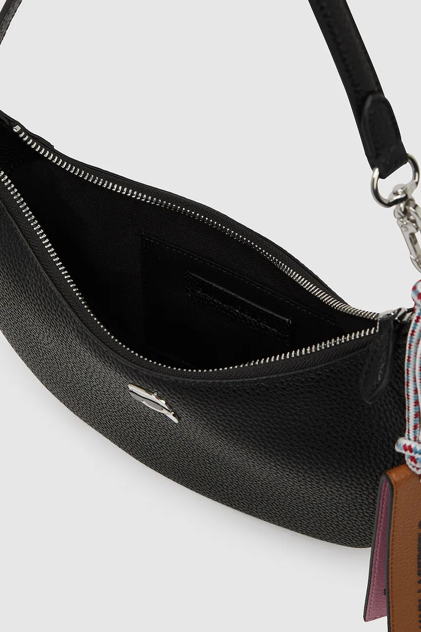- Zapięcie na suwak. - Wsuwana kieszonka wewnętrzna. - Model z podszewką. - Nie mieści formatu A4. - Długi uchwyt. - Głębokość: 4 cm. - Wysokość: 21 cm. - Szerokość u podstawy: 28 cm.