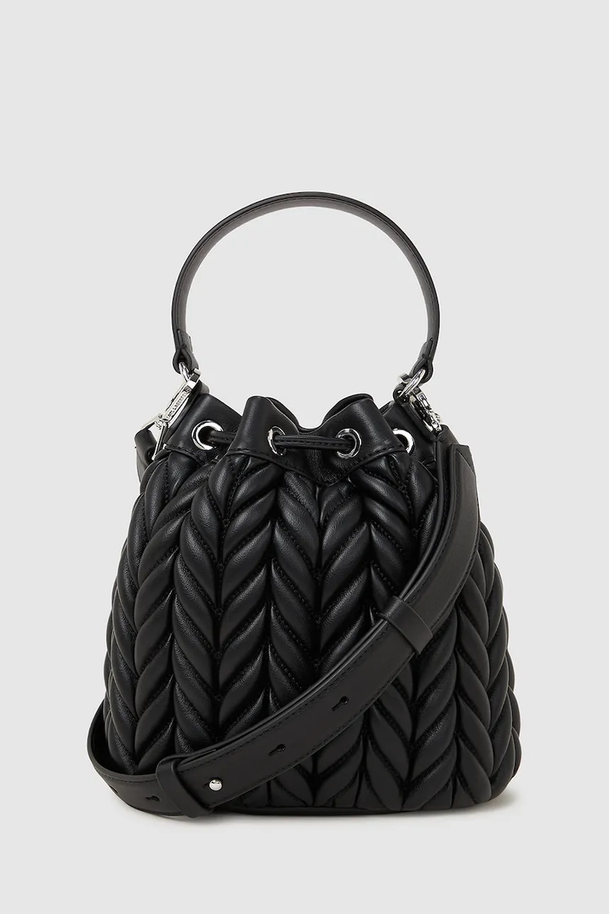 - Produkt zawiera materiały z włókien pochodzących z recyklingu. - Komora ściągana troczkami. - Posiada odpinany uchwyt i odpinany pasek z regulacją. - Nie mieści formatu A4. - Głębokość: 11 cm. - Wysokość: 20 cm. - Szerokość u podstawy: 18 cm.