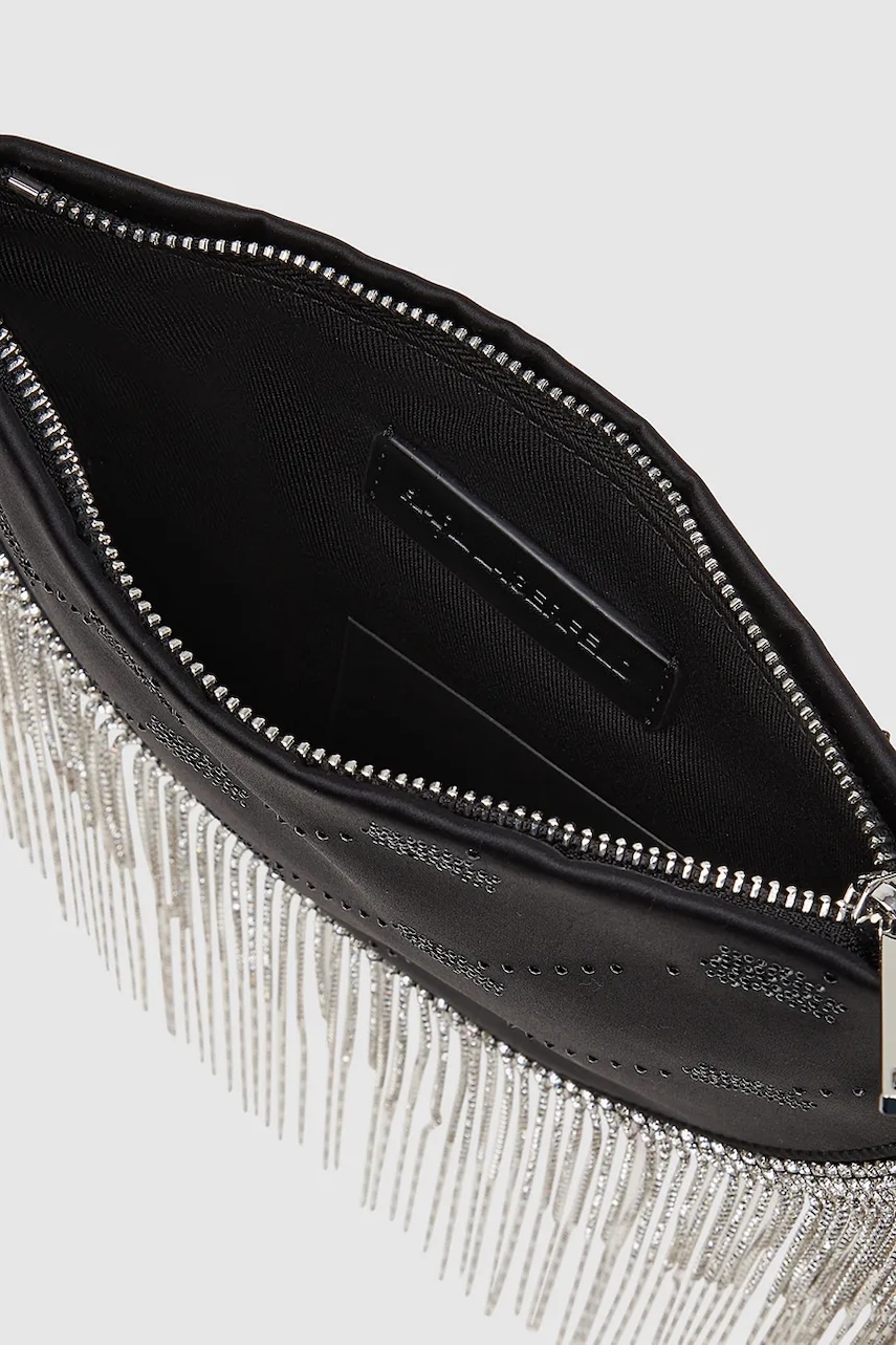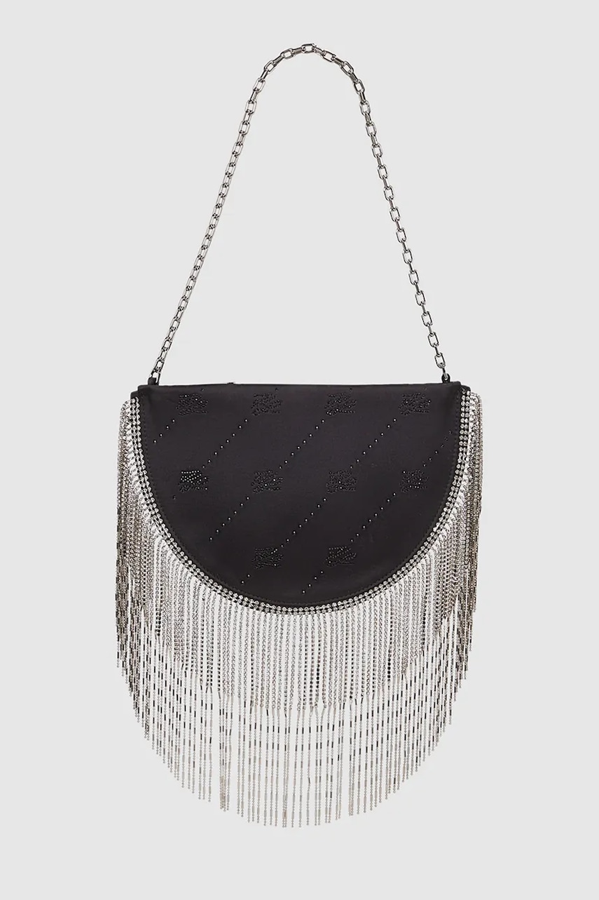 - Komora zapinana na suwak. - Model z ozdobnymi frędzlami. - Długi uchwyt. - Głębokość: 2 cm. - Wysokość: 17 cm. - Szerokość u podstawy: 25 cm.