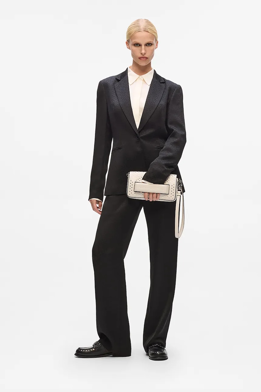 - Klapa zapinana na magnes. - Wsuwana kieszonka wewnętrzna. - Model z podszewką. - Nie mieści formatu A4. - Odpinany, nieregulowany uchwyt. - Głębokość: 9 cm. - Wysokość: 13,5 cm. - Szerokość u podstawy: 26,5 cm.