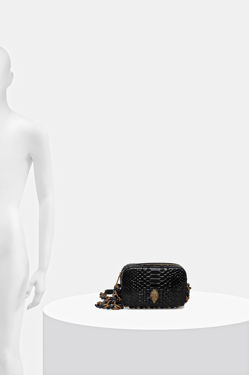 - Zapięcie na suwak. - Łańcuch dopięty na stałe. - Usztywnione dno torebki pozwala zachować kształt produktu przez długi czas. - Nie mieści formatu A4. - Wsuwana kieszonka wewnętrzna. - Model z podszewką. - Dołączony tekstylny worek zabezpiecza produkt przed kurzem. - Ozdobny detal. - Długość uchwytu: 125 cm. - Głębokość: 6 cm. - Wysokość: 12 cm. - Szerokość u podstawy: 19 cm.