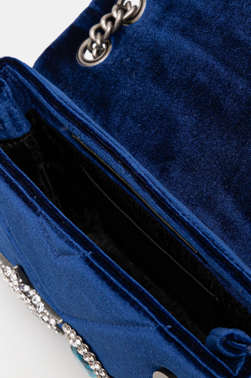 Kurt Geiger London torebka welurowa VELVET MINI KENSINGTON kolor granatowy 5018780789