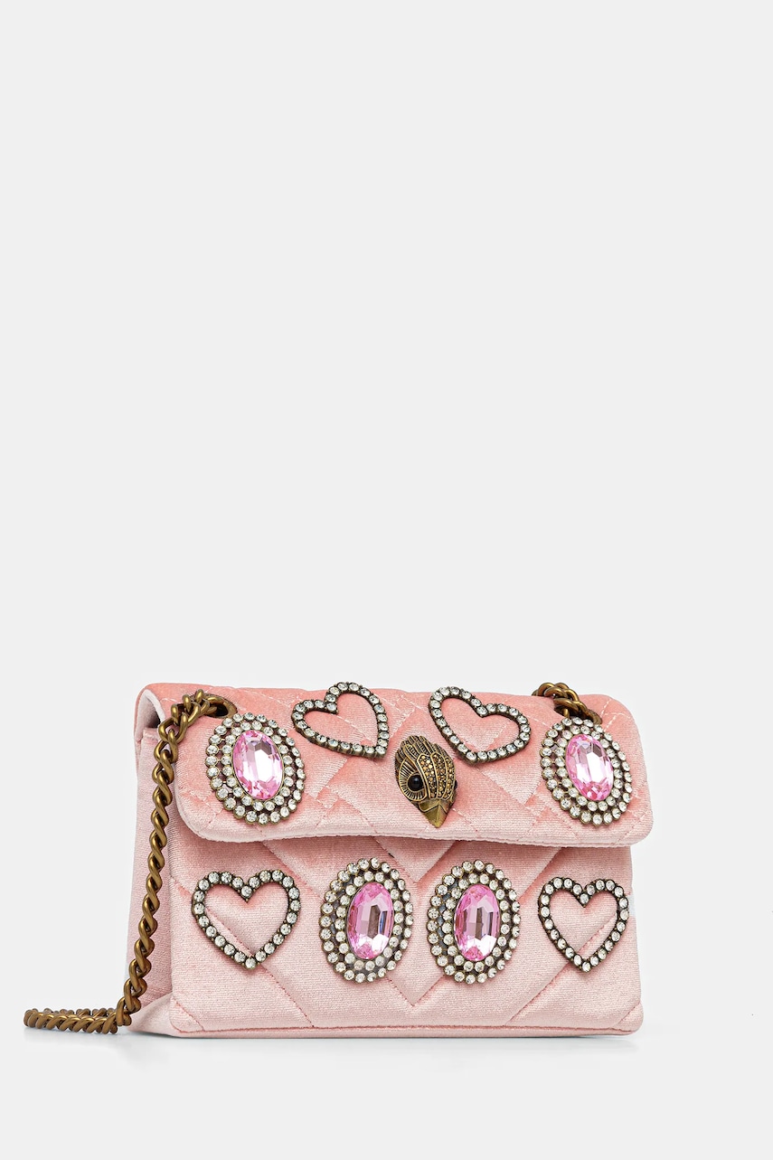 Kurt Geiger London torebka welurowa VELVET MINI KENSINGTON kolor różowy 5018753789
