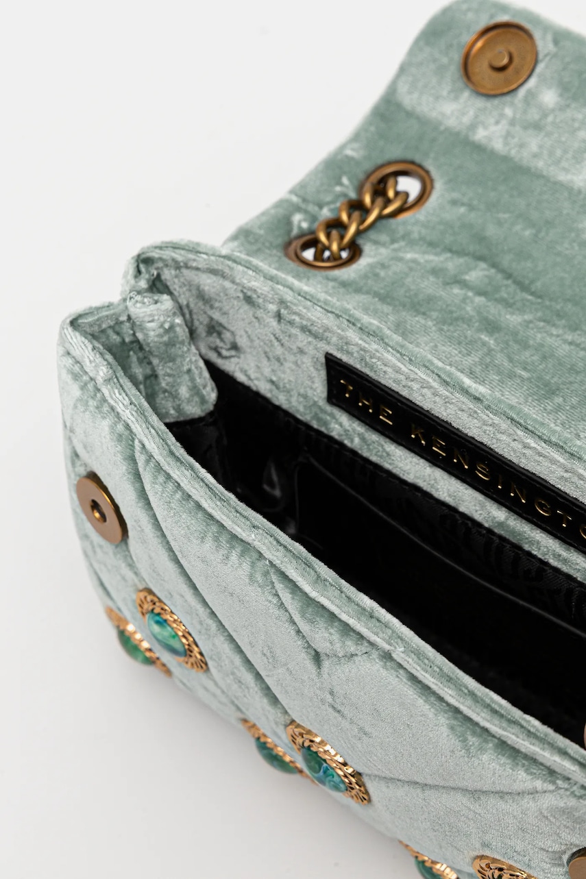 Kurt Geiger London torebka welurowa VELVET MINI KENSINGTON kolor zielony 5018373789