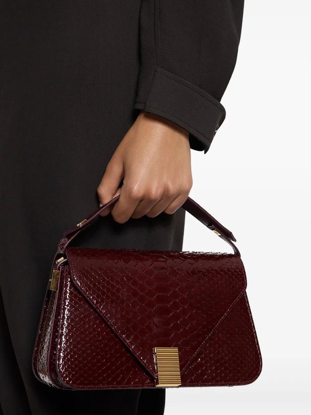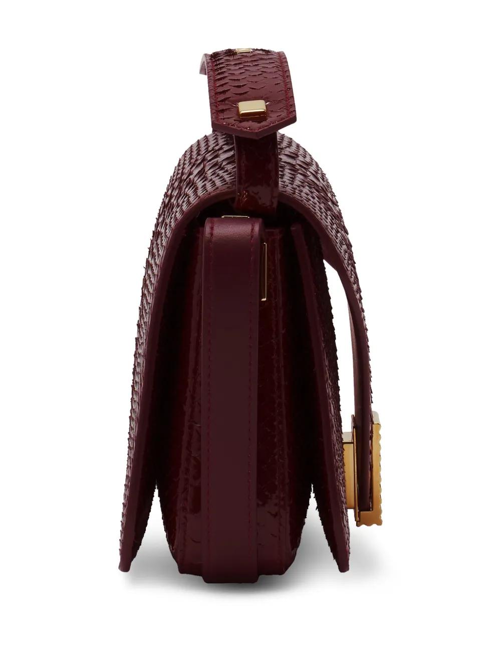 burgundy foldover top with magnetic fastening adjustable shoulder strap single top handle partitioned compartment This item comes from our partner boutiques in a variety of countries and cannot be shipped outside its region (either US, UAE, or the EU & UK). Please check the country of origin in the Shipping & Free Returns tab or your Shopping Bag to make sure it can be delivered to your location.