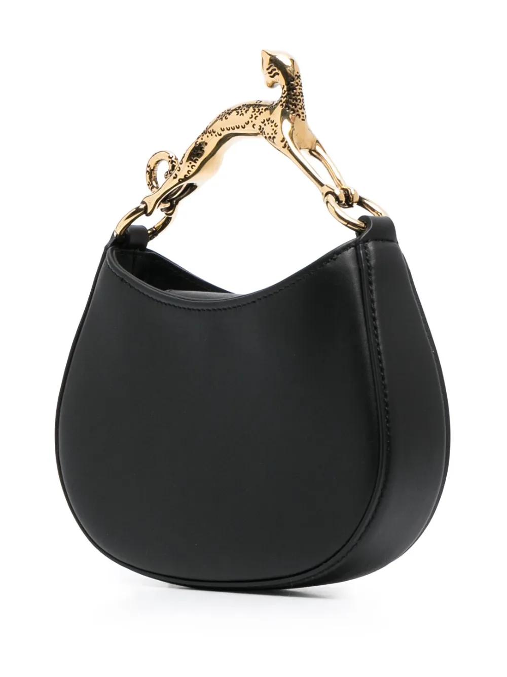 black calf leather smooth grain gold-tone hardware logo stamp to the front sculpted handle detachable shoulder strap magnetic fastening main compartment internal slip pocket