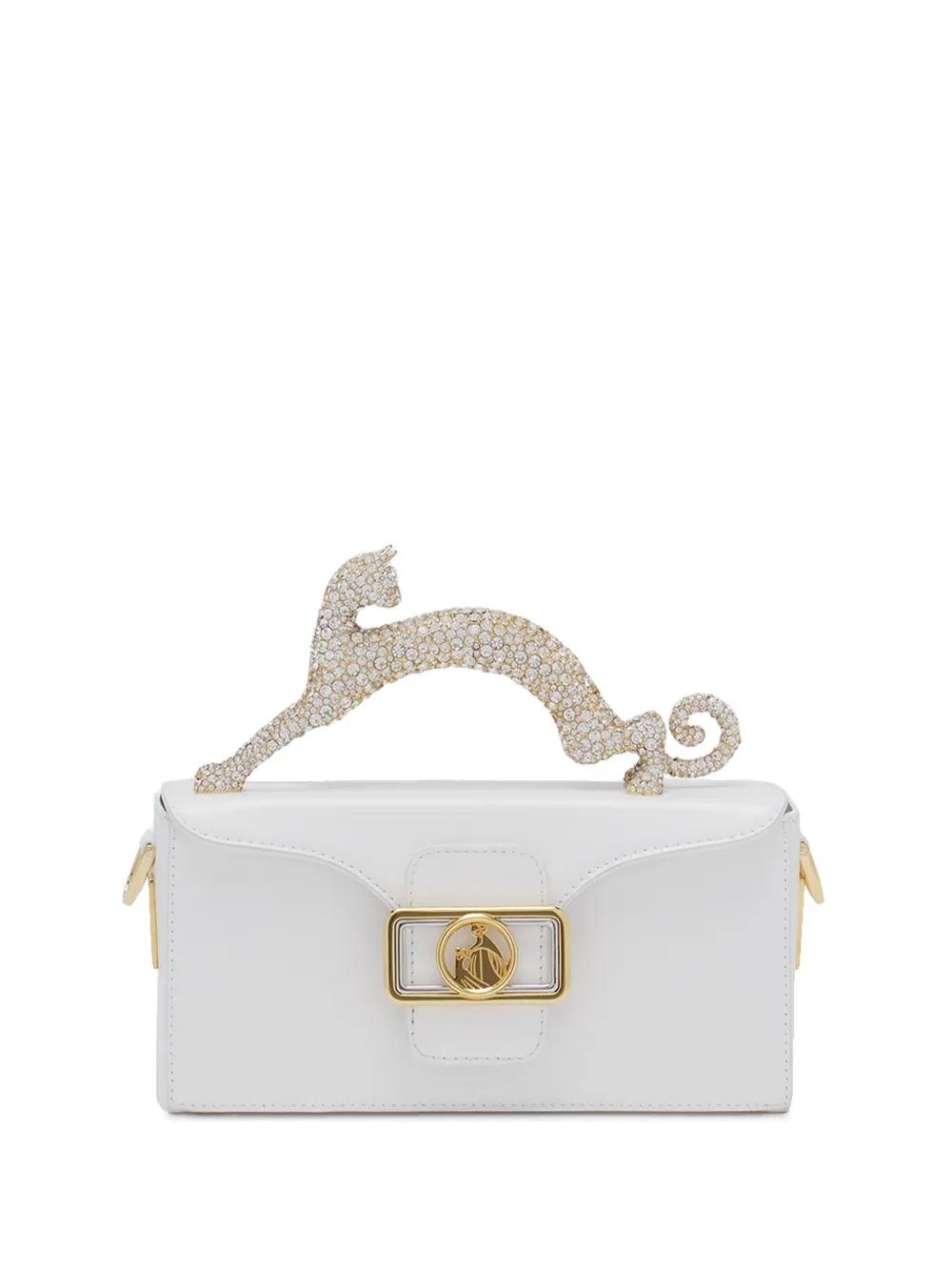 white foldover top with magnetic fastening detachable chain-link shoulder strap internal slip pocket This piece comes complete with a protective dust bag.