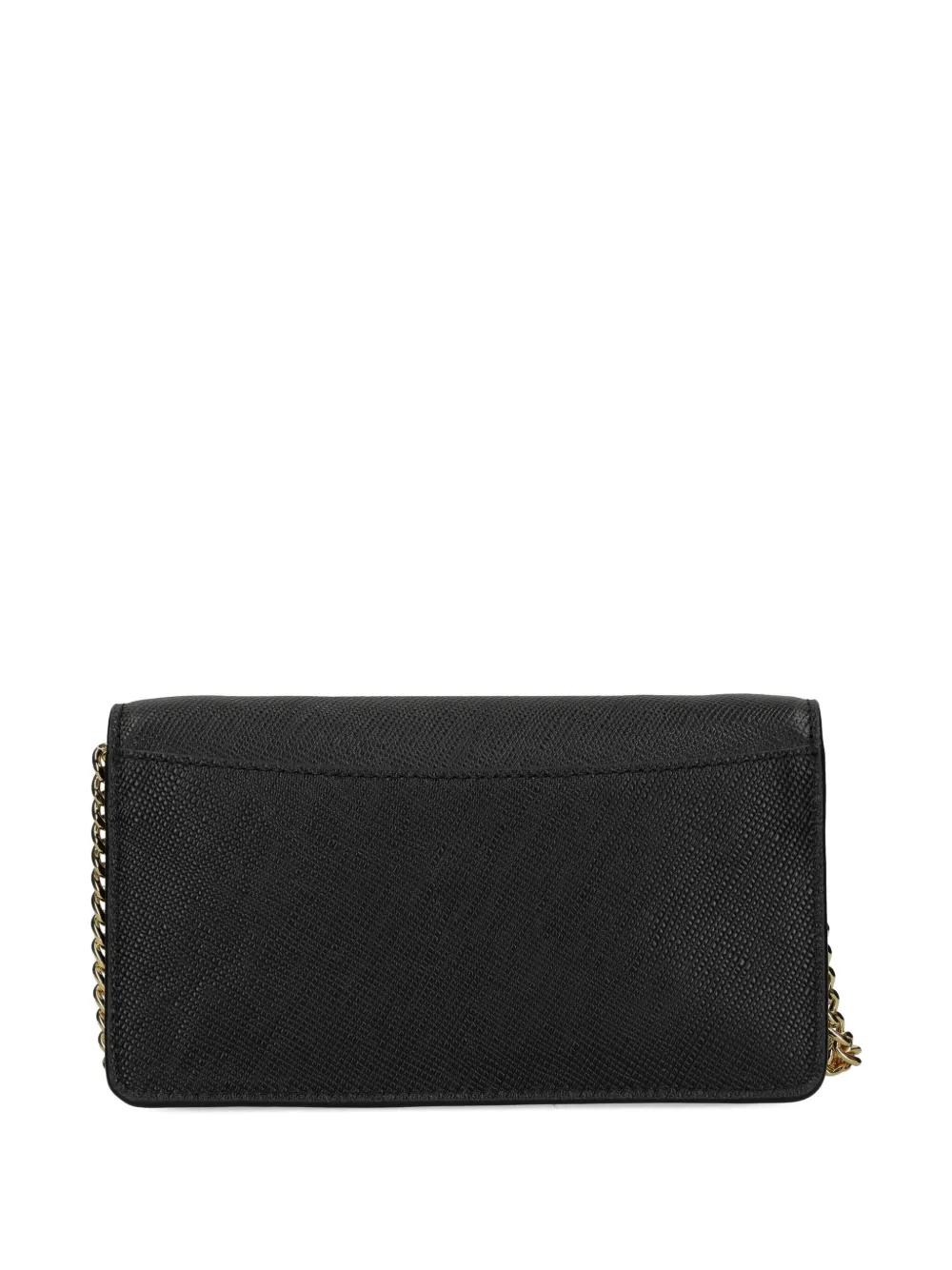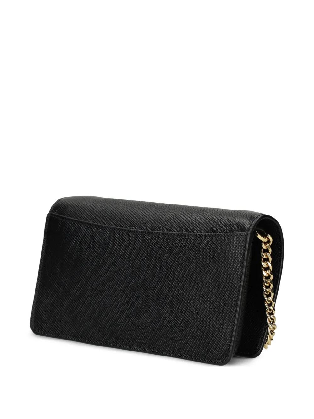 black leather gold-tone turn-lock fastening leather and chain-link shoulder strap textured finish logo detail