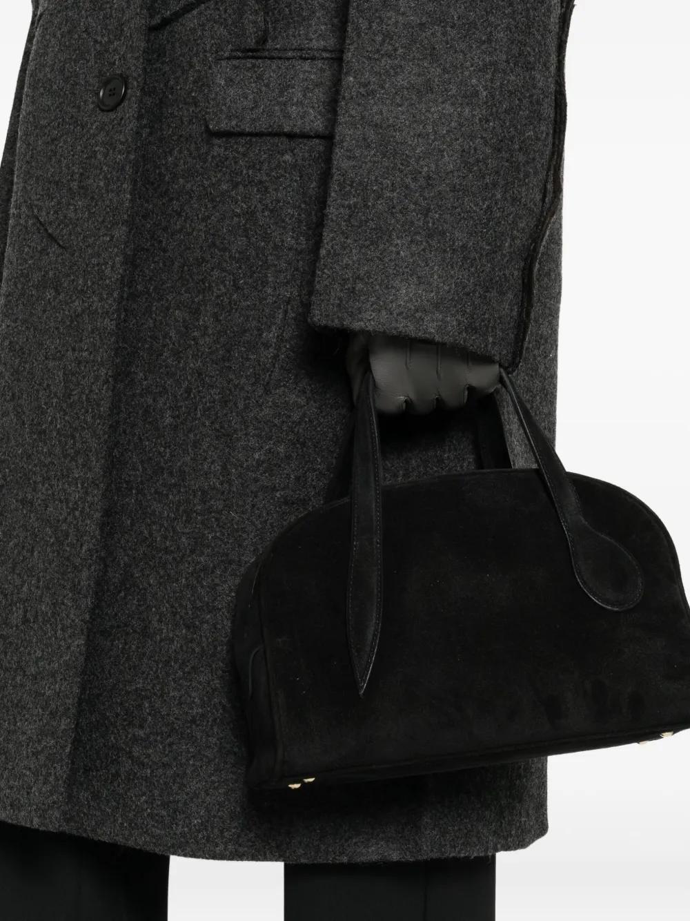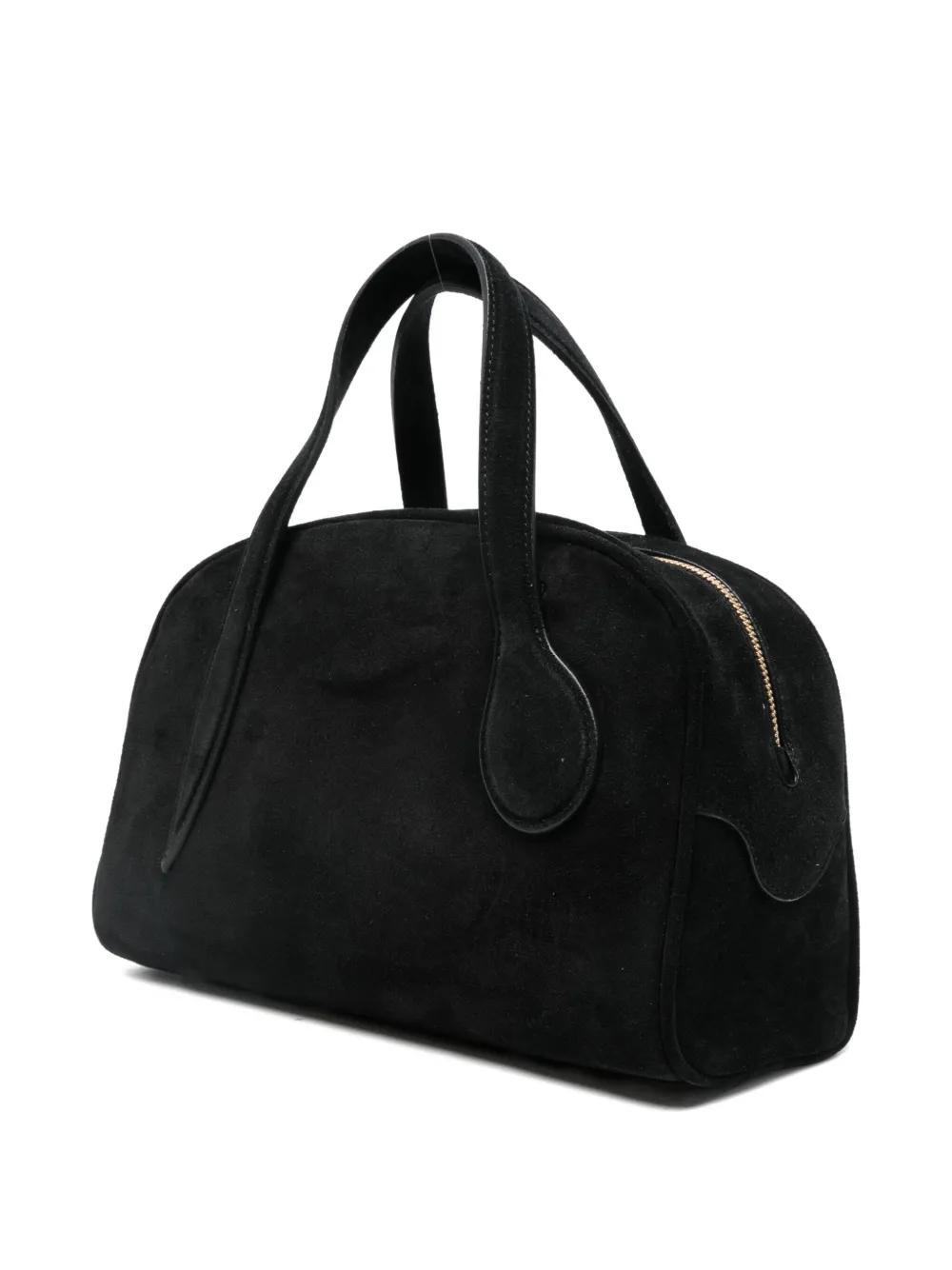 black suede finish top handles zip fastening shoulder strap internal slip pocket
