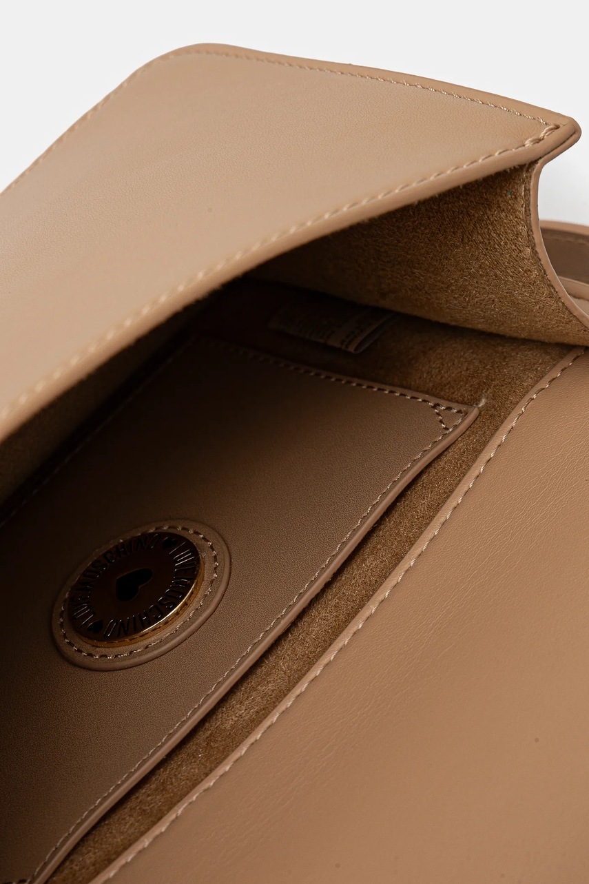 - Klapa zapinana na magnes. - Model bez podszewki. - Wewnętrzna, wsuwana kieszeń, która ułatwia bezpieczne przechowywanie drobiazgów. - Torebka do noszenia w ręku lub na ramieniu. - Nieodpinany długi pasek bez regulacji. - Nie mieści formatu A4. - Dołączony tekstylny worek zabezpiecza produkt przed kurzem. - Głębokość: 7 cm. - Wysokość: 14 cm. - Szerokość u podstawy: 20 cm.