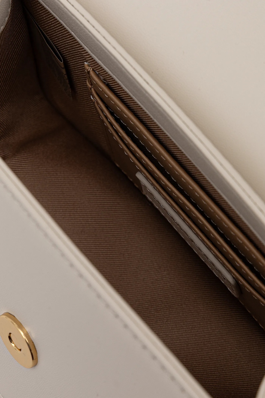 - Dołączony tekstylny worek zabezpiecza produkt przed kurzem. - Nie mieści formatu A4. - Klapa zapinana na magnes. - Przegrody na karty. - Posiada uchwyt i odpinany pasek z regulacją. - Model z ozdobną aplikacją. - Głębokość: 9 cm. - Wysokość: 11 cm. - Szerokość u podstawy: 15 cm. - Długość uchwytu: 27,5 cm. - Długość maksymalna paska: 119,5 cm. - Długość minimalna paska: 107 cm.