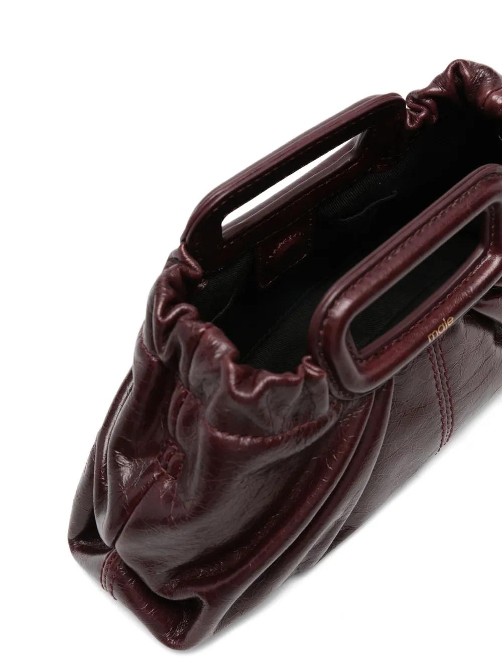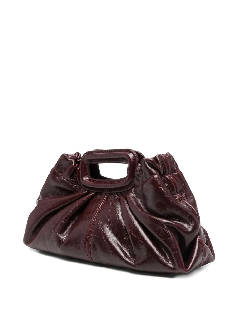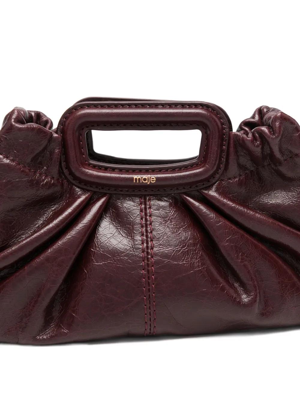 burgundy top handles gathered details detachable shoulder strap magnetic fastening seam detail