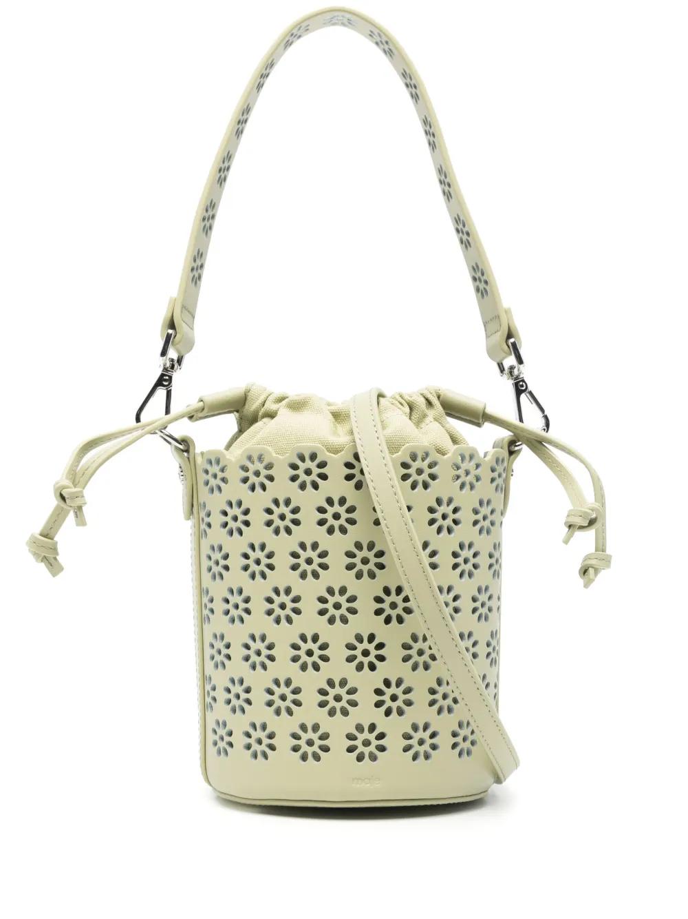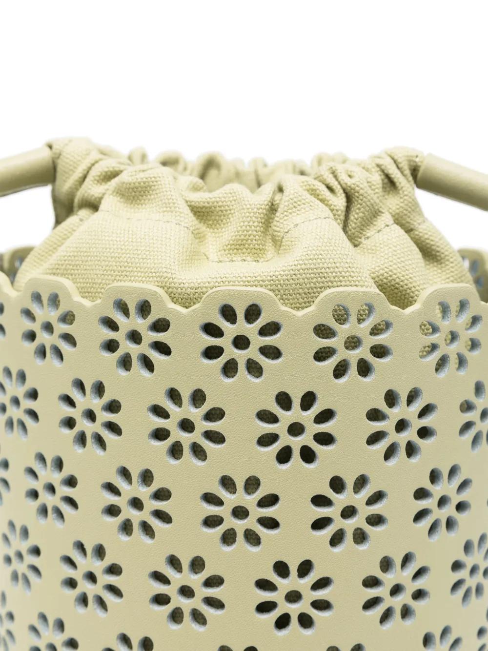pastel green top drawstring fastening adjustable detachable shoulder strap single detachable top handle internal slip pocket