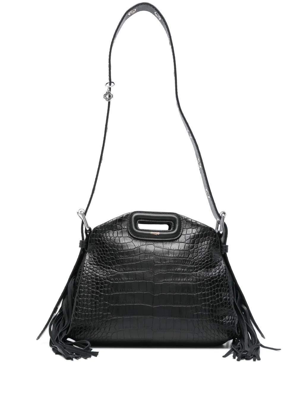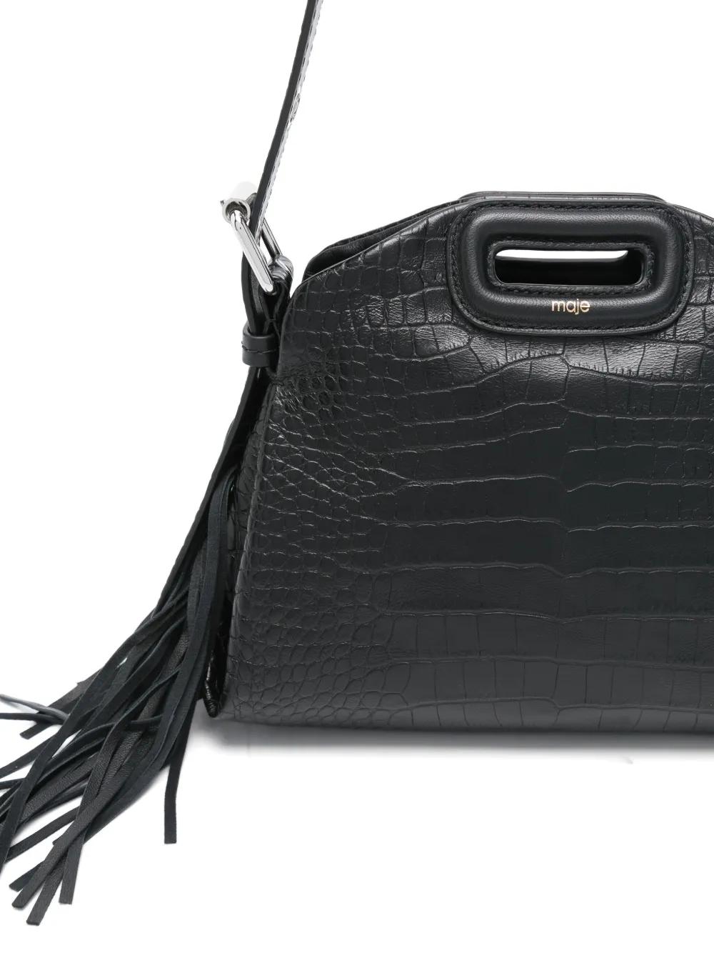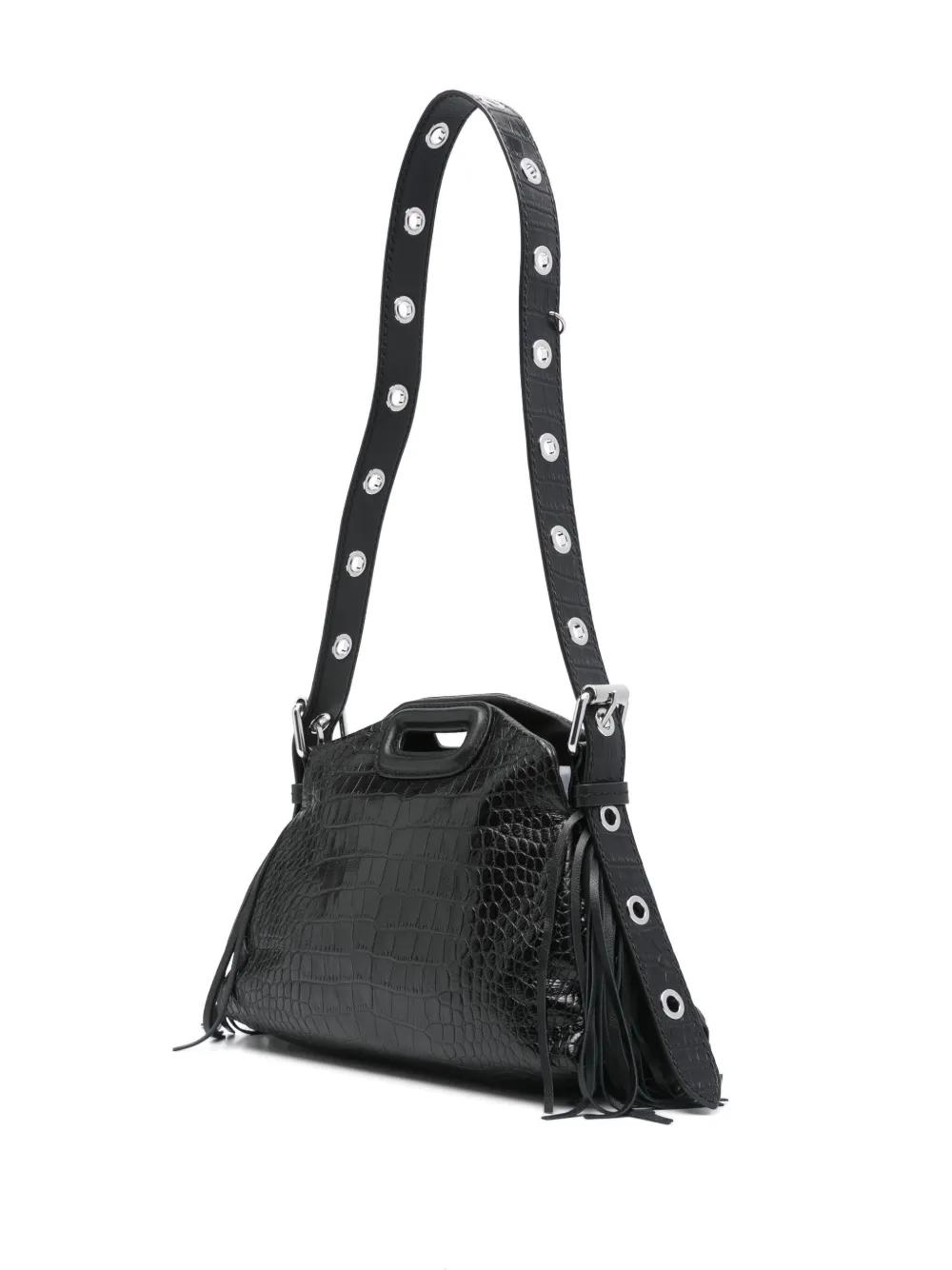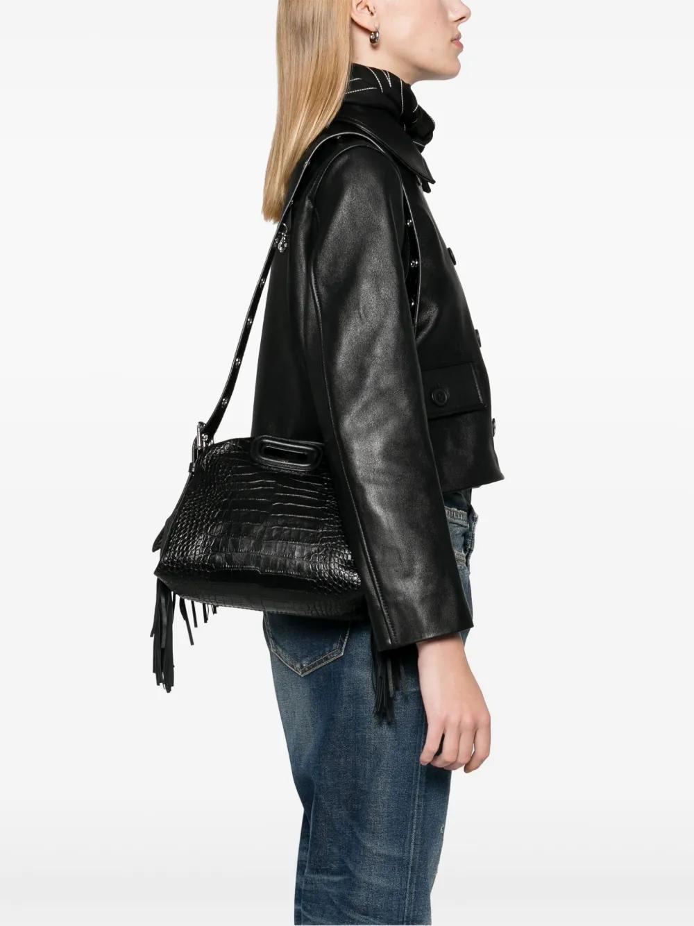 black leather embossed crocodile effect cut-out top handle adjustable shoulder strap metal eyelet detailing rivet detailing fringe detailing rhinestone embellishment main compartment internal patch pocket internal logo stamp This piece comes complete with a protective dust bag.