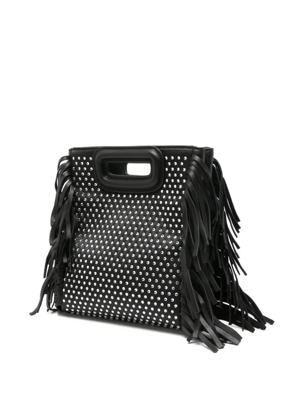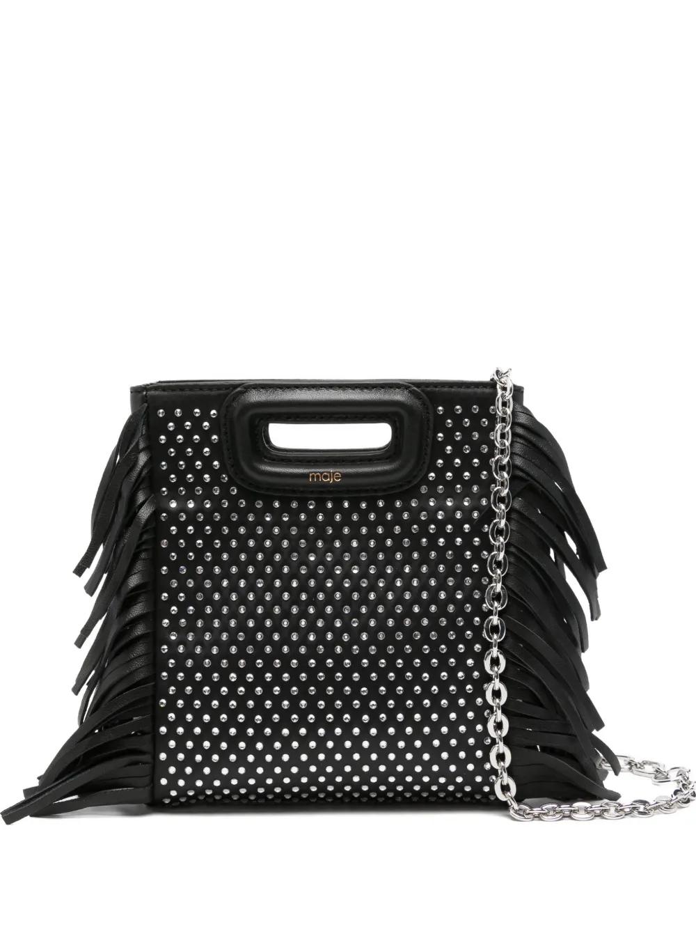 black leather rhinestone embellishment fringe detailing top handles chain-link shoulder strap