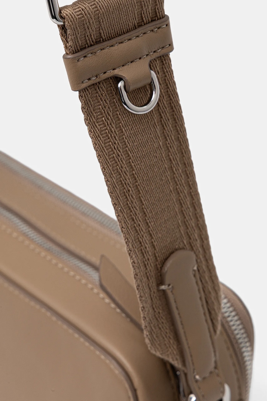 - Produkt wyprodukowany zgodnie z założeniami Fair Wear Foundation, organizacji zrzeszającej marki odzieżowe tworzące produkty w bardziej zrównoważony i etyczny sposób. Produkty oznaczone znakiem Fair Wear powstały w fabrykach, które pozytywnie przeszły zewnętrzny audyt i zapewniają pracownikom odpowiednie warunki pracy oraz wynagrodzenie. - Recycled Claim Standard (RCS) to międzynarodowe, dobrowolne standardy, które określają wymagania dotyczące certyfikacji przez stronę trzecią surowców wtórnych i łańcucha kontroli. Wspólnym celem tych standardów jest zwiększenie wykorzystania materiałów pochodzących z recyklingu. - Dwukomorowy model. - Zapięcie na suwak. - Model z podszewką. - Nie mieści formatu A4. - Torebka do noszenia w ręku lub na ramieniu. - Nieodpinany długi pasek z regulacją. - Posiada dwie kieszenie wewenętrzne: jedna wsuwana, druga zapinana na suwak. - Głębokość: 7 cm. - Wysokość: 14 cm. - Szerokość u podstawy: 23 cm.