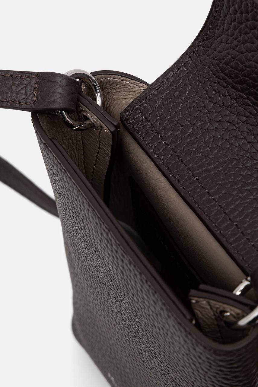 - Model wyprodukowany zgodnie z założeniami organu Leather Working Group, który wydaje garbarniom certyfikaty na drodze rygorystycznych audytów. Celem tych działań jest ograniczenie zużycia energii i wody potrzebnej do garbowania skóry, a także wyeliminowanie zanieczyszczenia ściekami. - Zapięcie na magnes. - Model bez podszewki. - Wewnętrzna przegroda na kartę. - Torebka do noszenia w ręku lub na ramieniu. - Nieodpinany długi pasek z regulacją. - Nie mieści formatu A4. - Długość minimalna paska: 113 cm. - Długość maksymalna paska: 143 cm. - Głębokość: 5 cm. - Wysokość: 20 cm. - Szerokość u podstawy: 13 cm.