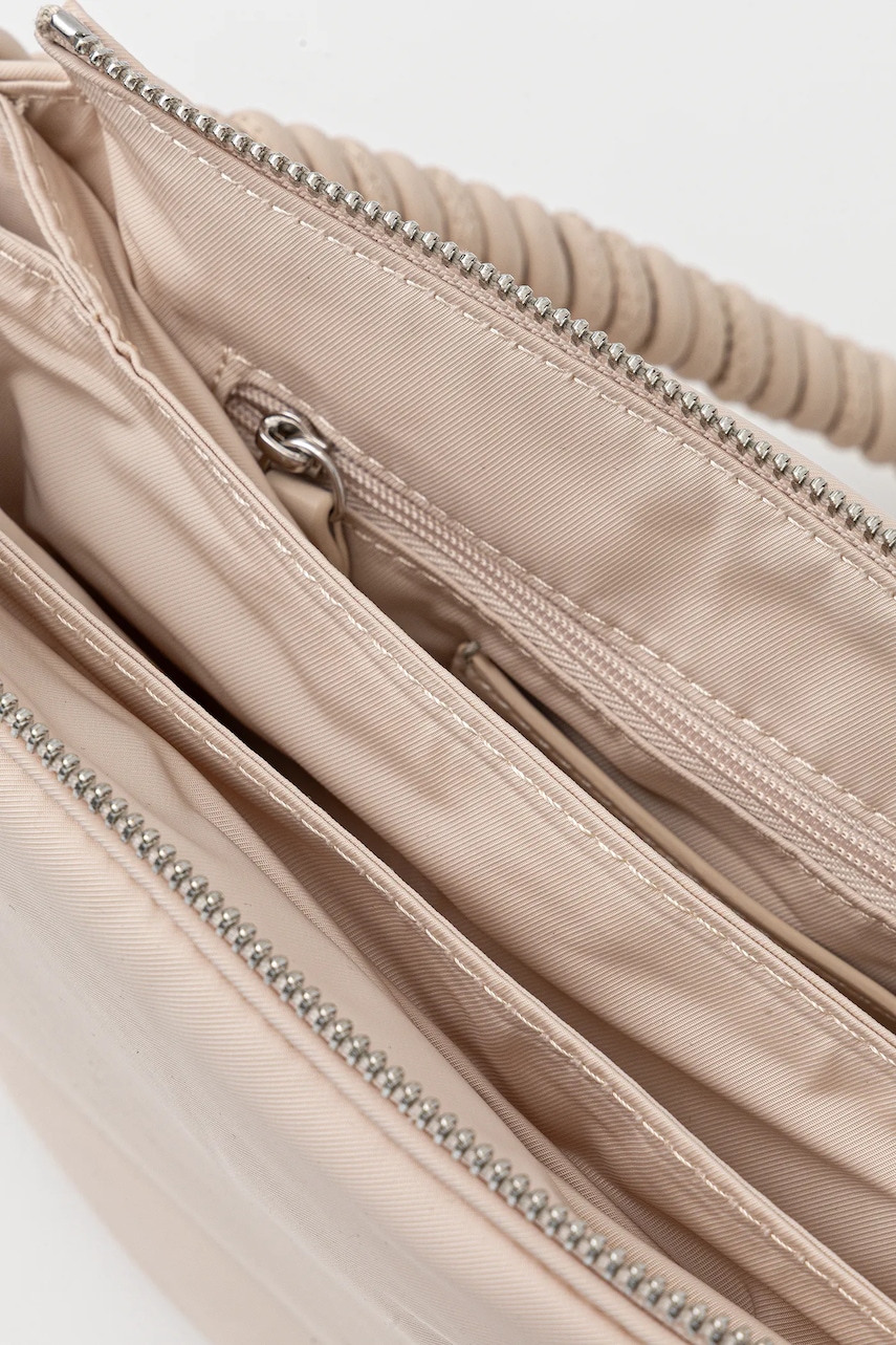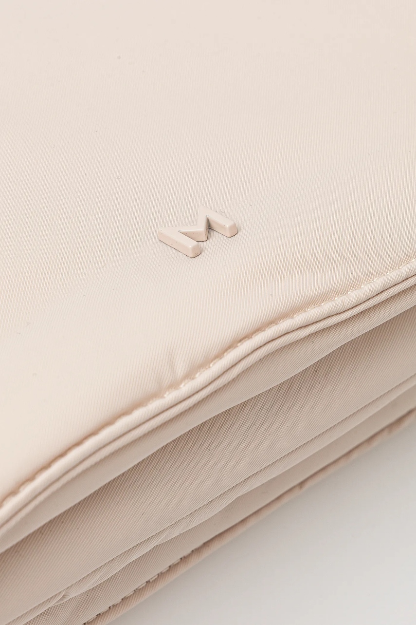 - Ten produkt został częściowo uszyty z poliestru pochodzącego z recyklingu. - Zapięcie na suwak. - Posiada trzy przegrody. - Kieszonka wewnętrzna zapinana na suwak. - Posiada odpinany uchwyt i odpinany pasek z regulacją. - Nie mieści formatu A4. - Długość minimalna paska: 111 cm. - Długość maksymalna paska: 125 cm. - Długość uchwytu: 52 cm. - Głębokość: 11 cm. - Wysokość: 15 cm. - Szerokość u podstawy: 29 cm.