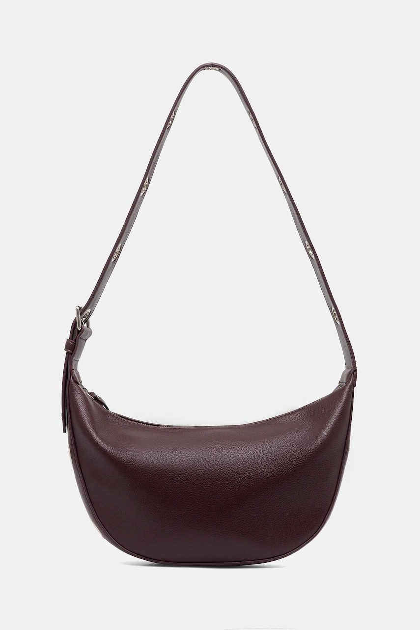 - Zapięcie na suwak. - Kieszonka wewnętrzna zapinana na suwak. - Z tyłu kieszonka zapinana na suwak. - Nieodpinany pasek z regulacją. - Model z ozdobnymi eyeletami. - Model z podszewką. - Nie mieści formatu A4. - Głębokość: 6 cm. - Wysokość: 19 cm. - Szerokość u podstawy: 24 cm.