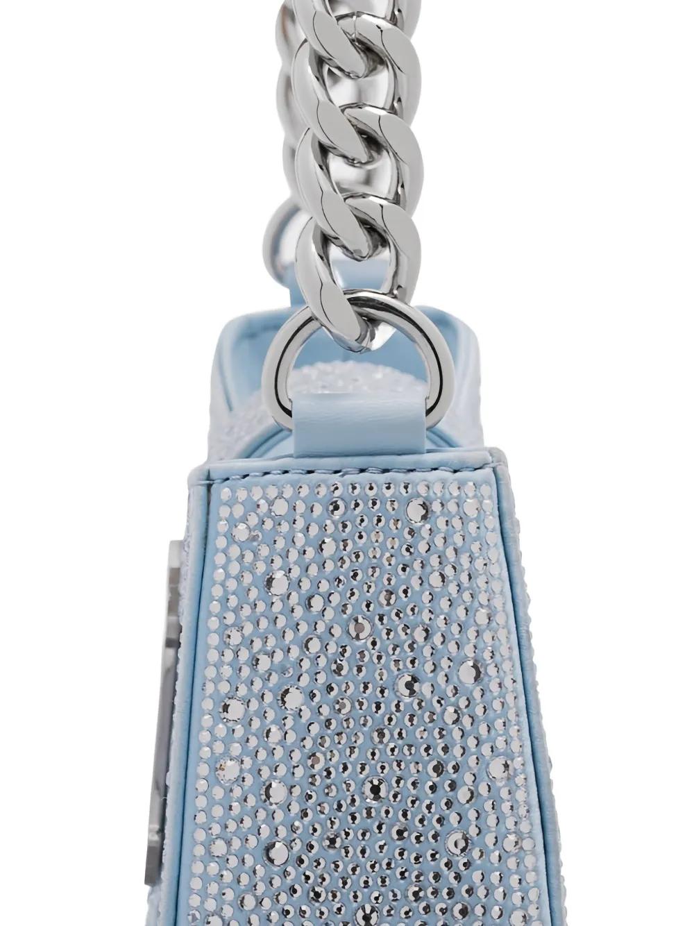 light blue chain strap crystal-cut accents silver-tone hardware zip closure