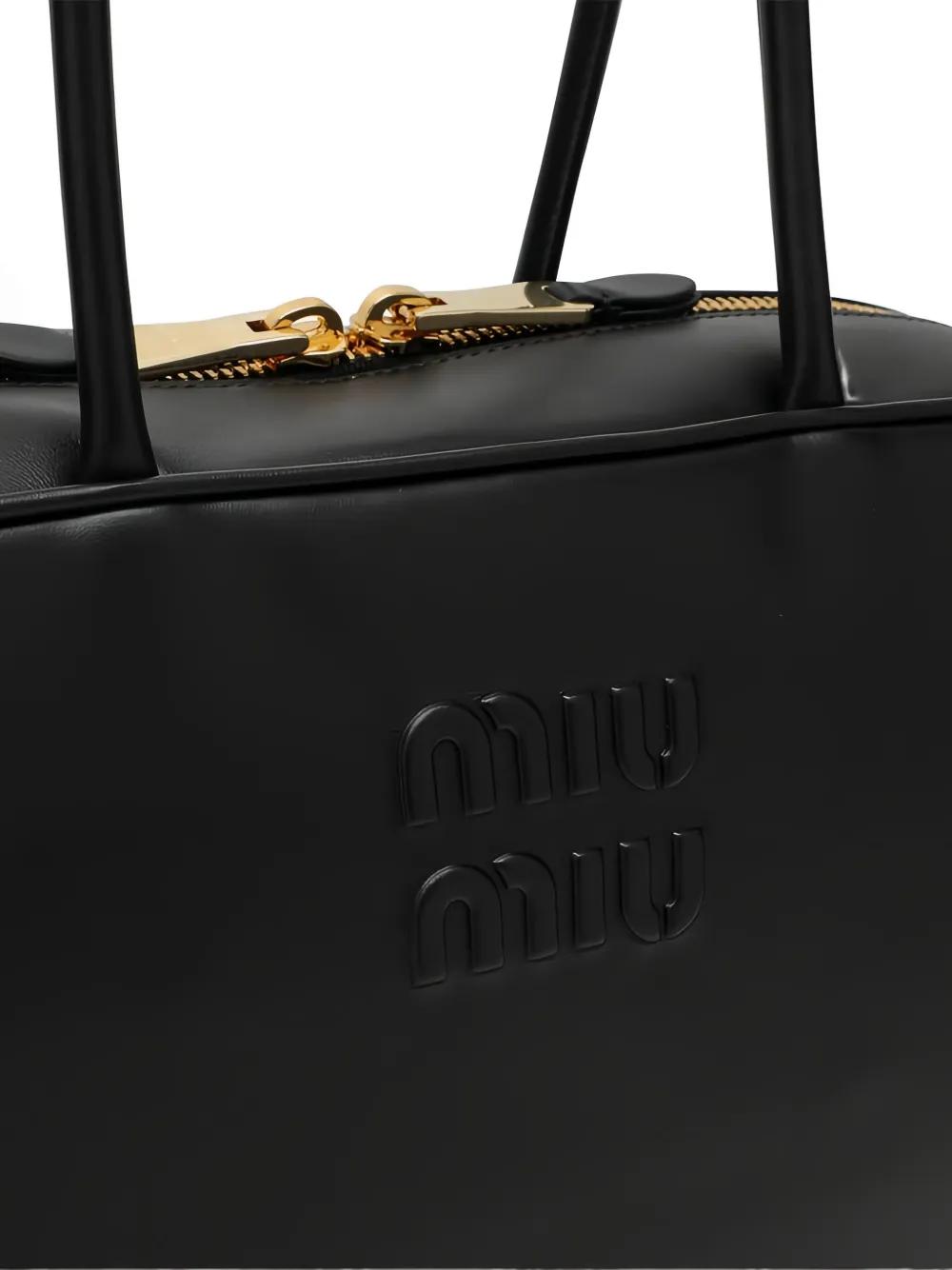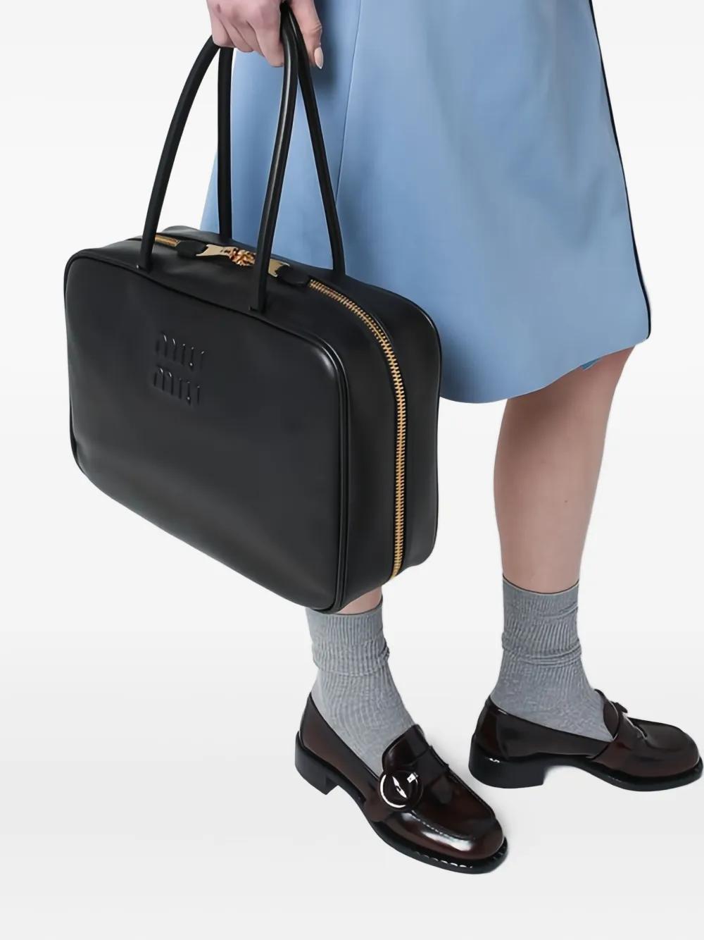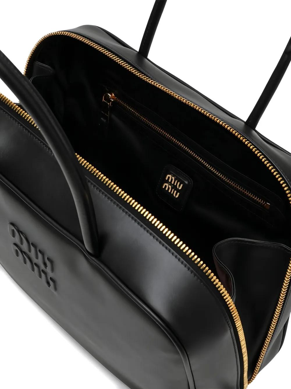 black embossed logo top handle zip fastening gold-tone hardware internal zip pocket