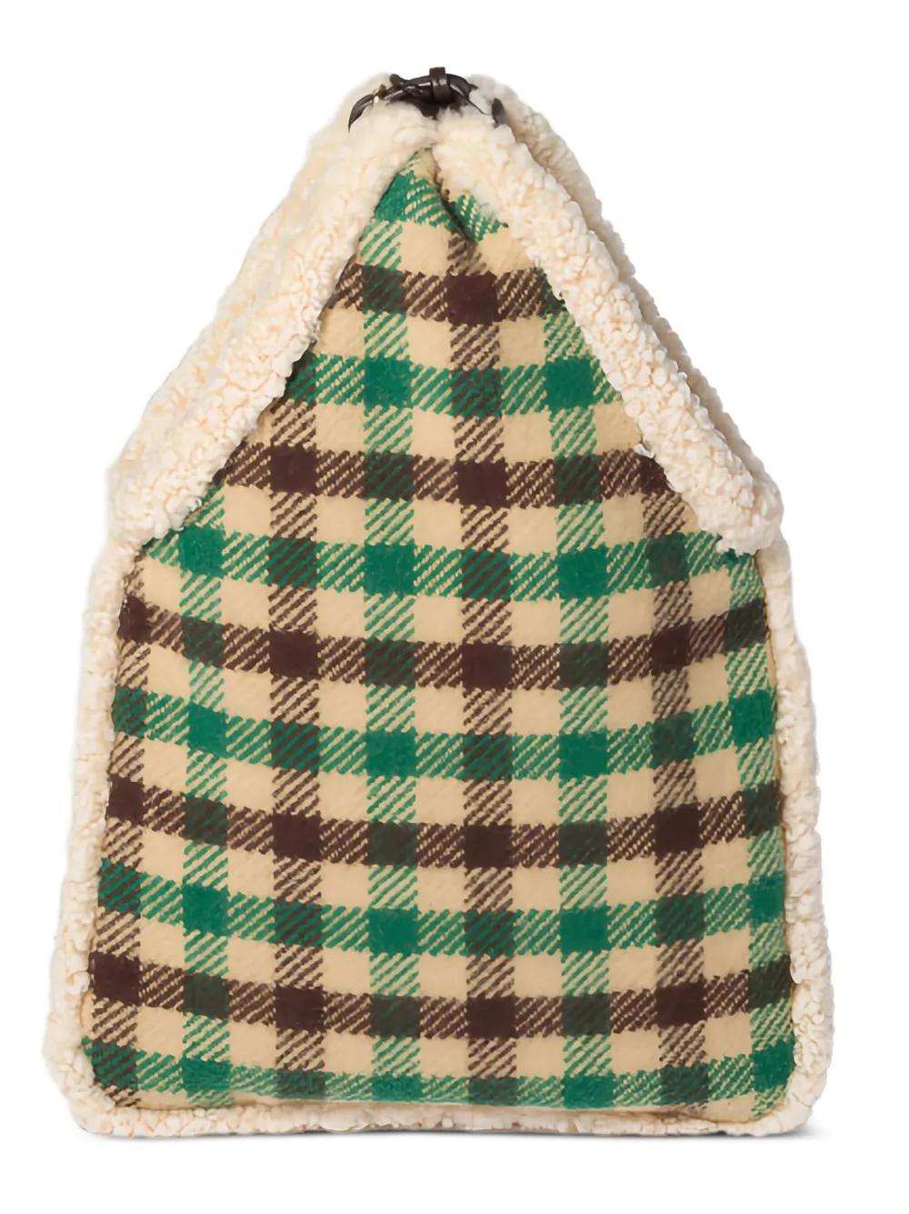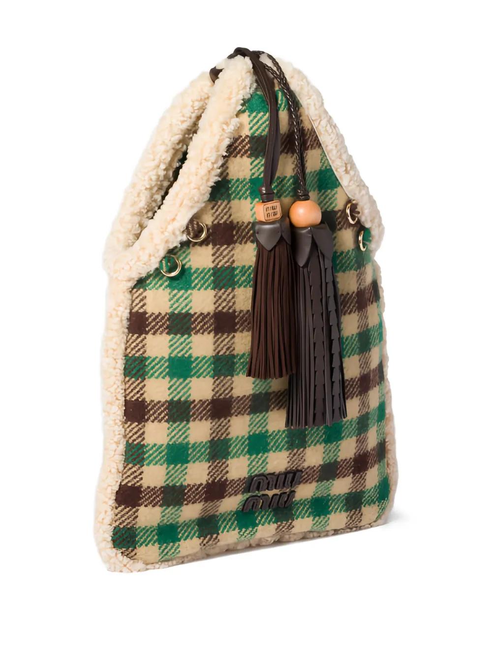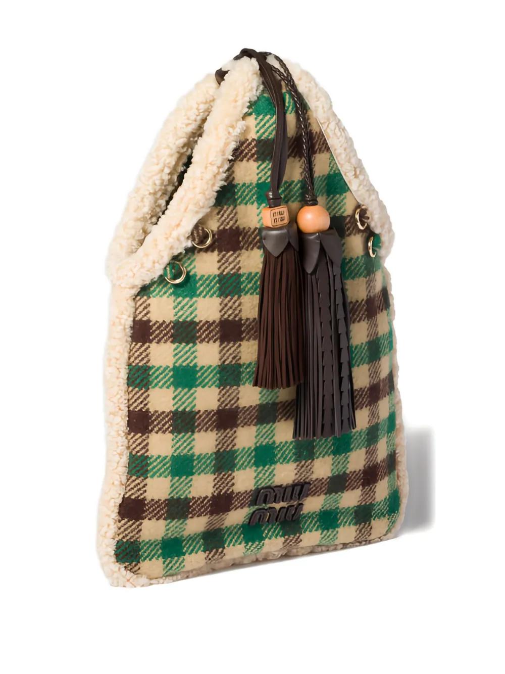 multicolour check pattern shearling trim tassel detail top handle gold-tone hardware