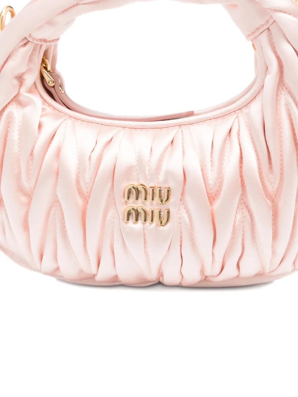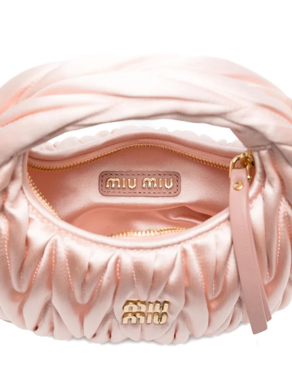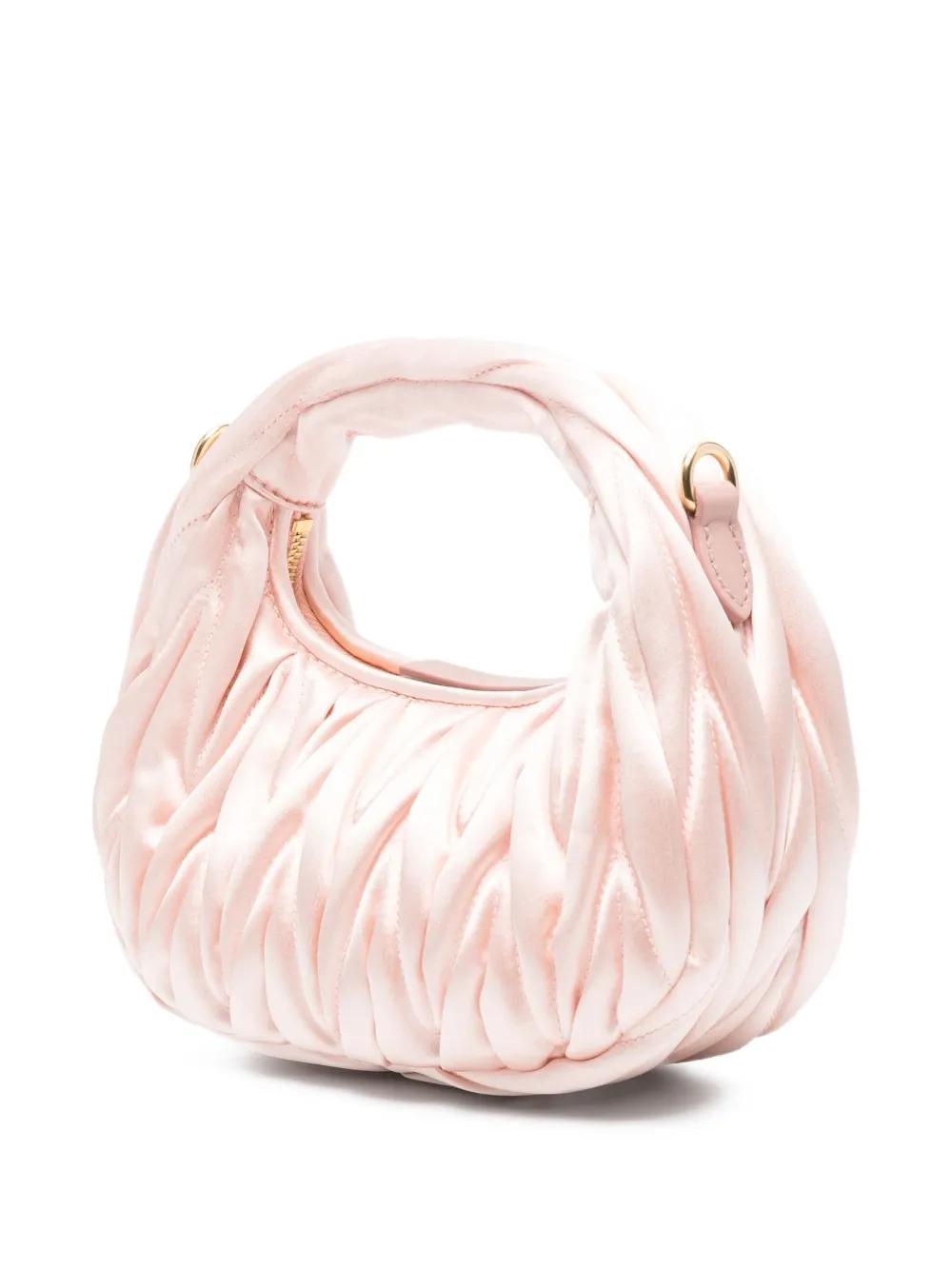 pink pleated satin top handle zip fastening logo plaque detachable shoulder strap