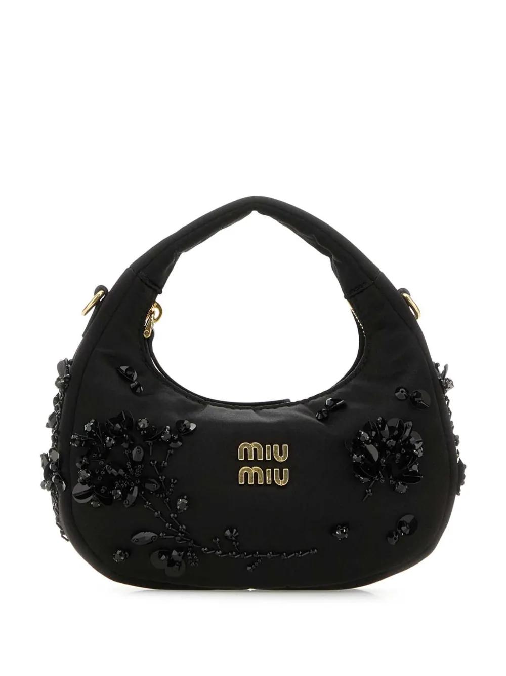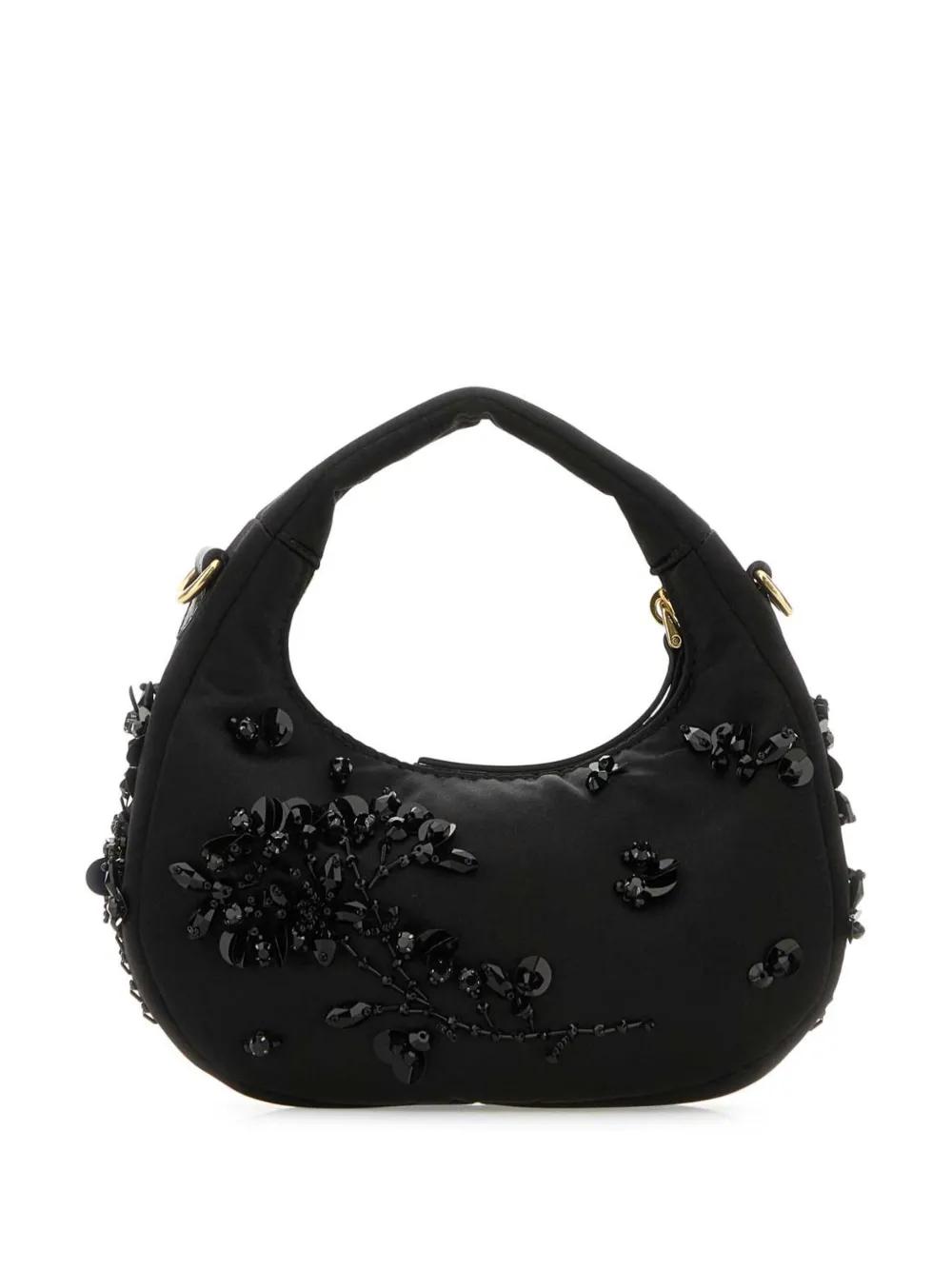black sequin embellishment gold-tone logo lettering top zip fastening