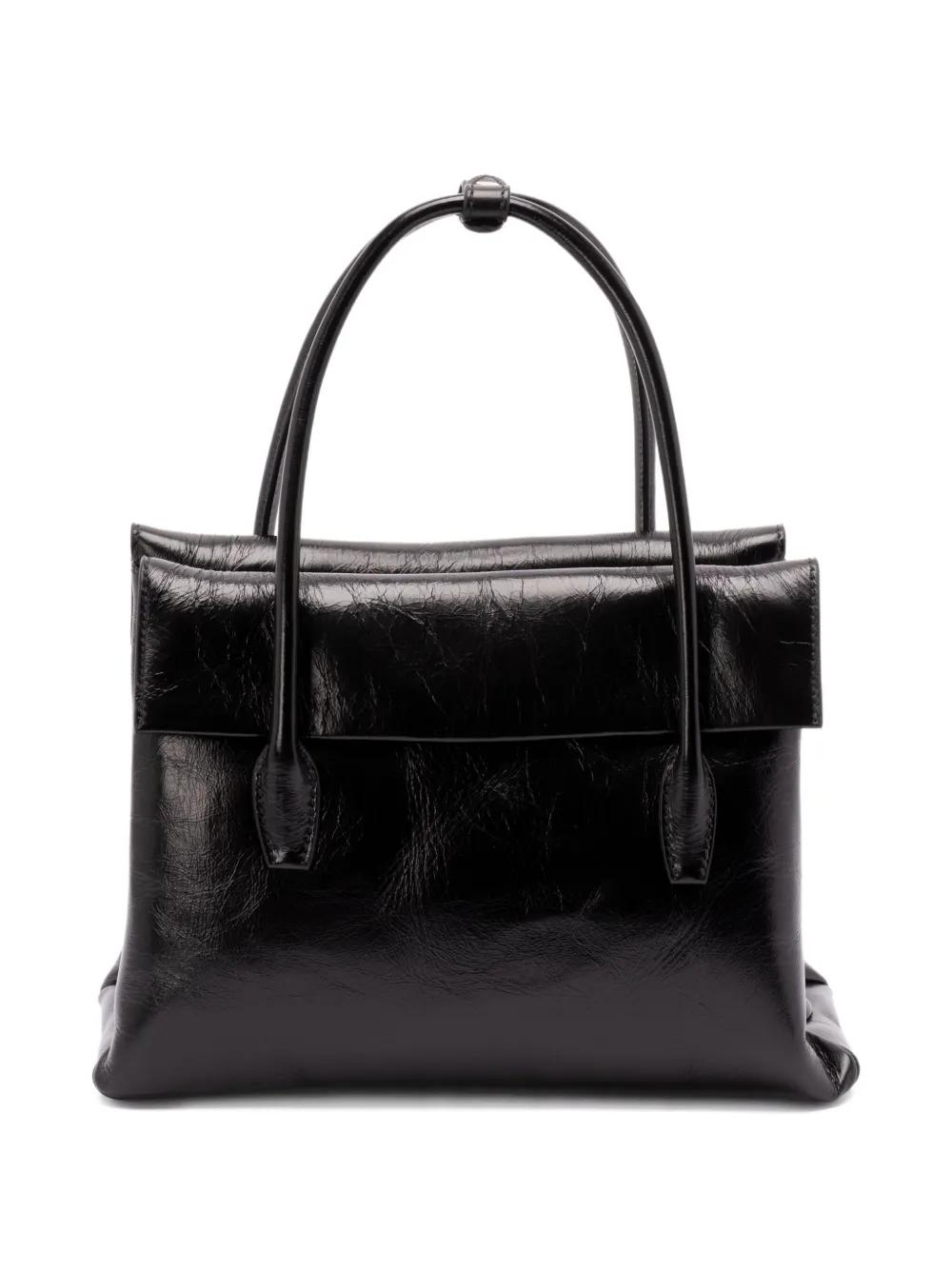 black calf leather top handles fold-over top detachable shoulder strap gold-tone hardware