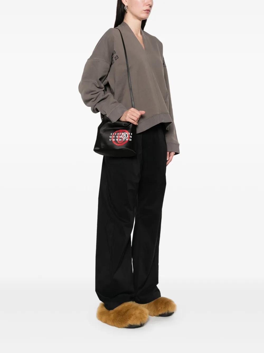 black press-stud fastening single top handle adjustable shoulder strap signature numbers motif