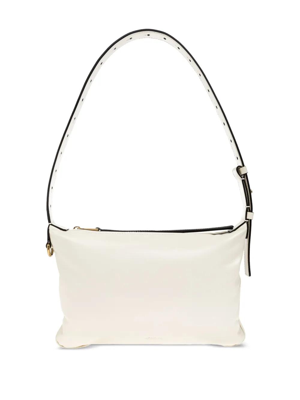 white leather zip fastening gold-tone logo plaque adjustable shoulder strap buckle detail This piece comes complete with a protective dust bag.