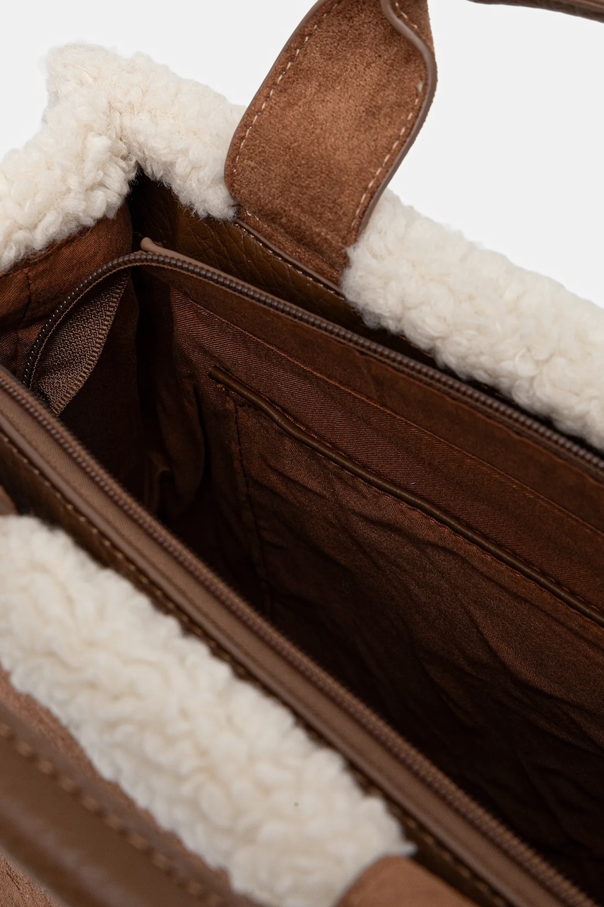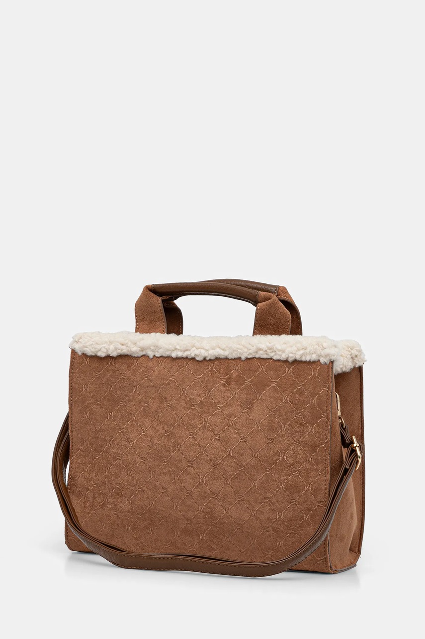 - Nie mieści formatu A4. - Komora zapinana na suwak. - Posiada kieszonki wewnętrzne, w tym jedną zapinaną na suwak. - Posiada uchwyty i odpinany pasek z regulacją. - Model z podszewką. - Głębokość: 9 cm. - Wysokość: 25 cm. - Szerokość u podstawy: 30,5 cm. - Długość uchwytów: 27 cm. - Długość minimalna paska: 75 cm. - Długość maksymalna paska: 133 cm.