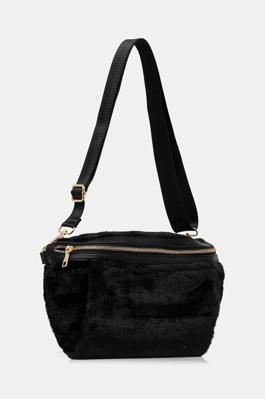 - Zapięcie na suwak. - Odpinany pasek z regulacją. - Nie mieści formatu A4. - Posiada dwie kieszenie wewnętrzne: jedna wsuwana, druga zapinana na suwak. - Długość minimalna paska: 77 cm. - Długość maksymalna paska: 126 cm. - Głębokość: 10 cm. - Wysokość: 20 cm. - Szerokość u podstawy: 32 cm.