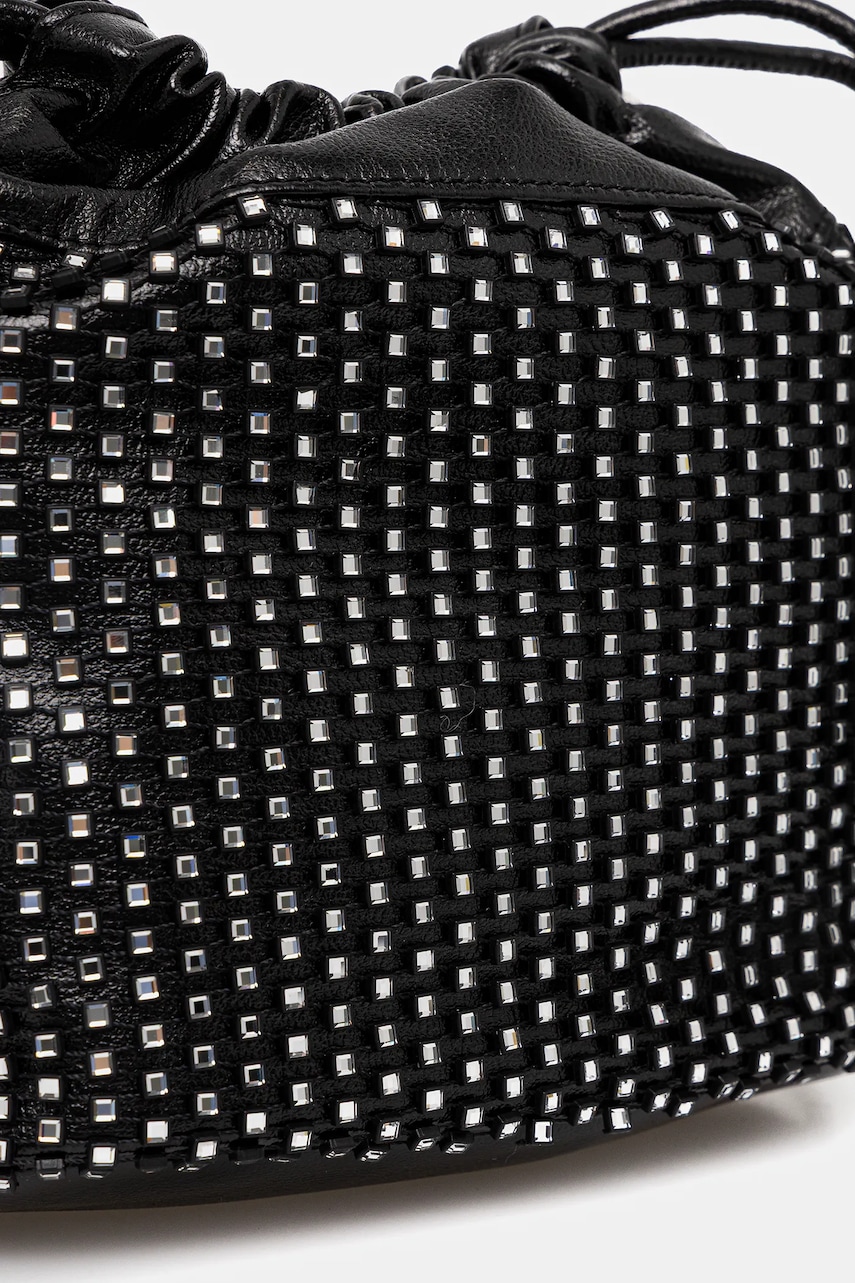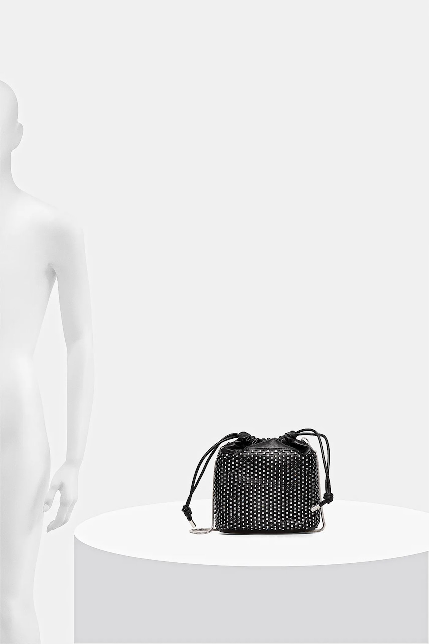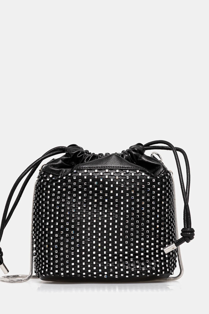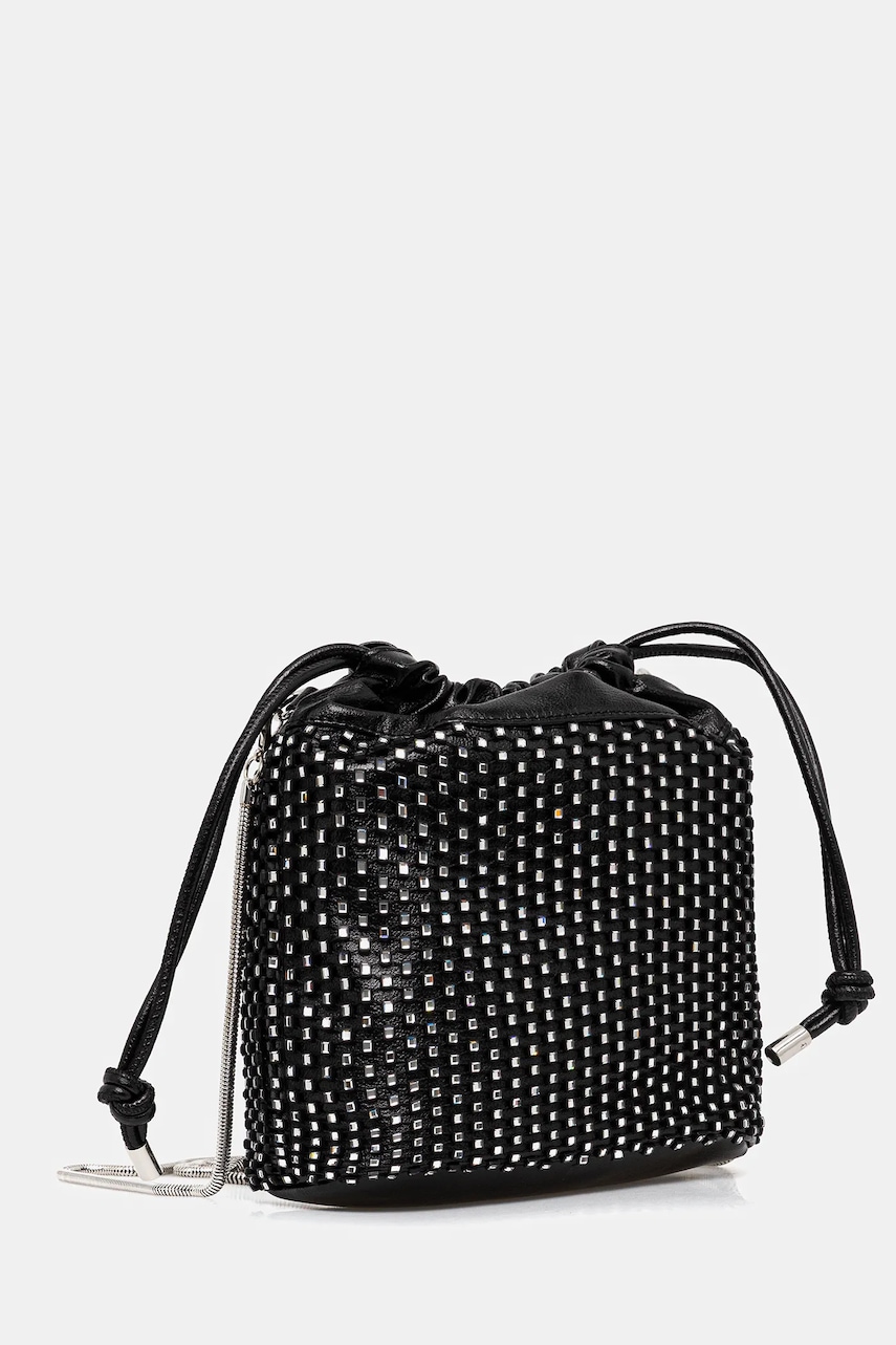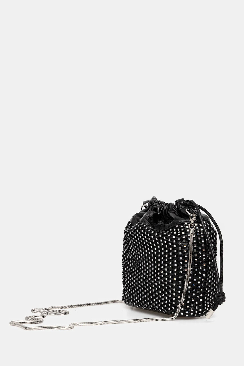 - Nie mieści formatu A4. - Komora ściągana troczkami. - Model z ozdobną aplikacją. - Model z podszewką. - Model z odpinanym, ozdobnym łańcuszkiem. - Głębokość: 9,5 cm. - Wysokość: 20 cm. - Szerokość u podstawy: 18 cm.