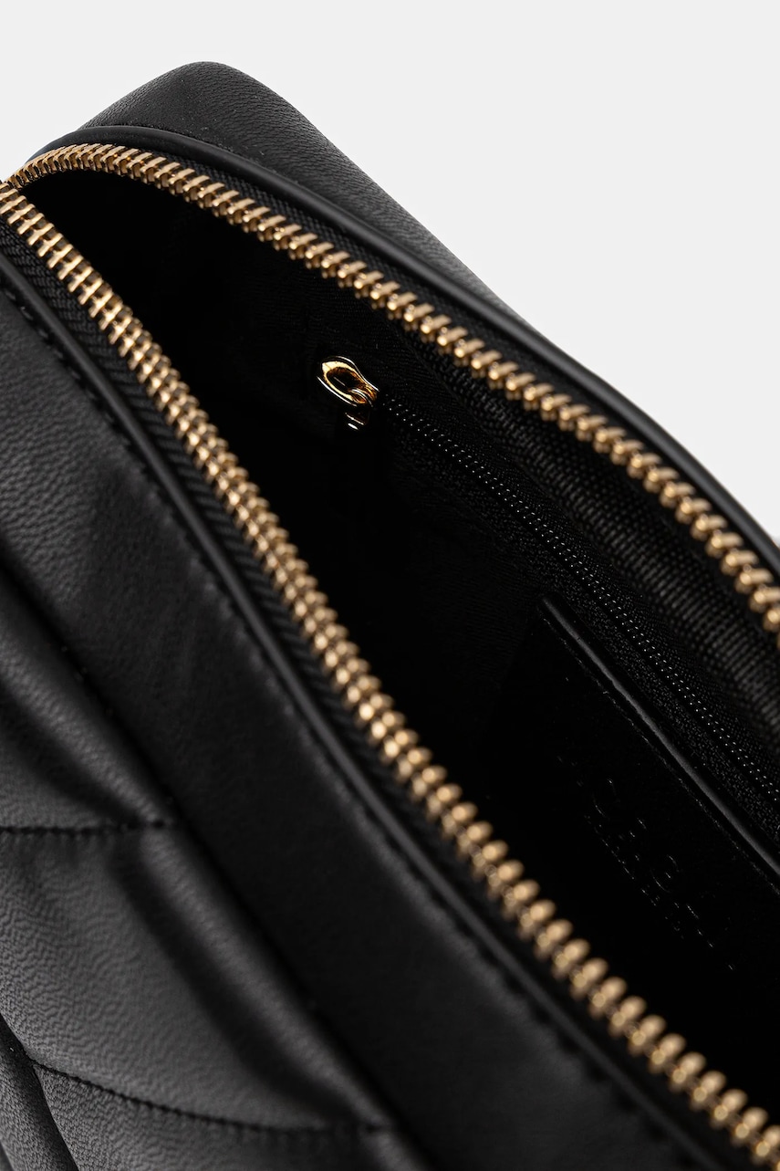 - Zapięcie na suwak. - Model z podszewką. - Nie mieści formatu A4. - Posiada dwie kieszenie wewenętrzne: jedna wsuwana, druga zapinana na suwak. - Torebka do noszenia w ręku lub na ramieniu. - Nieodpinany długi pasek bez regulacji. - Długość paska: 121 cm. - Głębokość: 5 cm. - Wysokość: 17 cm. - Szerokość u podstawy: 22 cm.