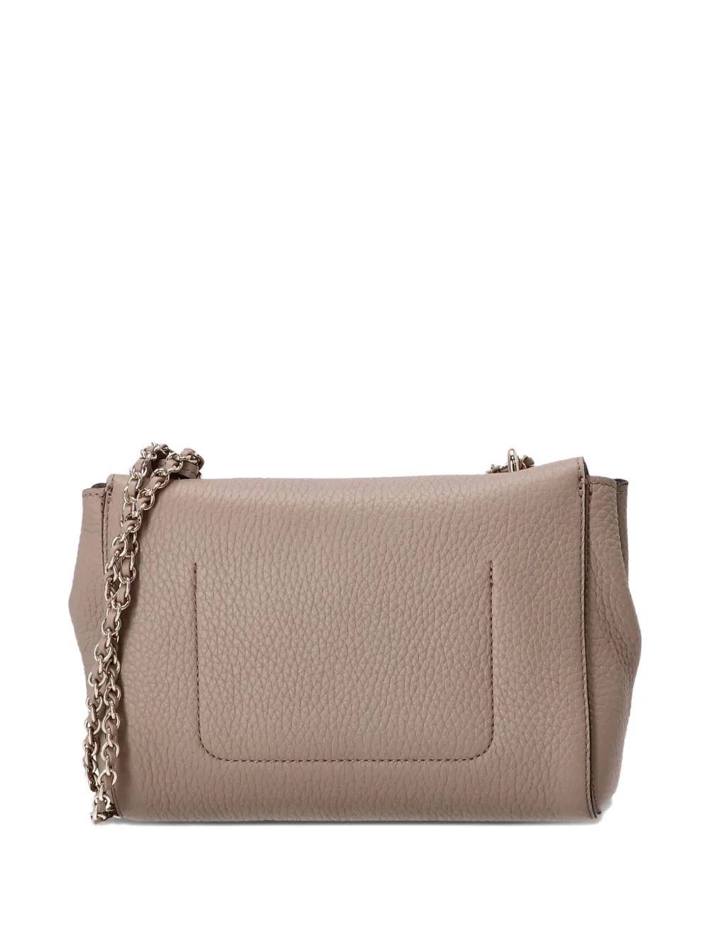 beige leather postbox clasp chain strap flap closure curved shape Please refer to the Size & Fit tab to learn more about this item's dimensions.