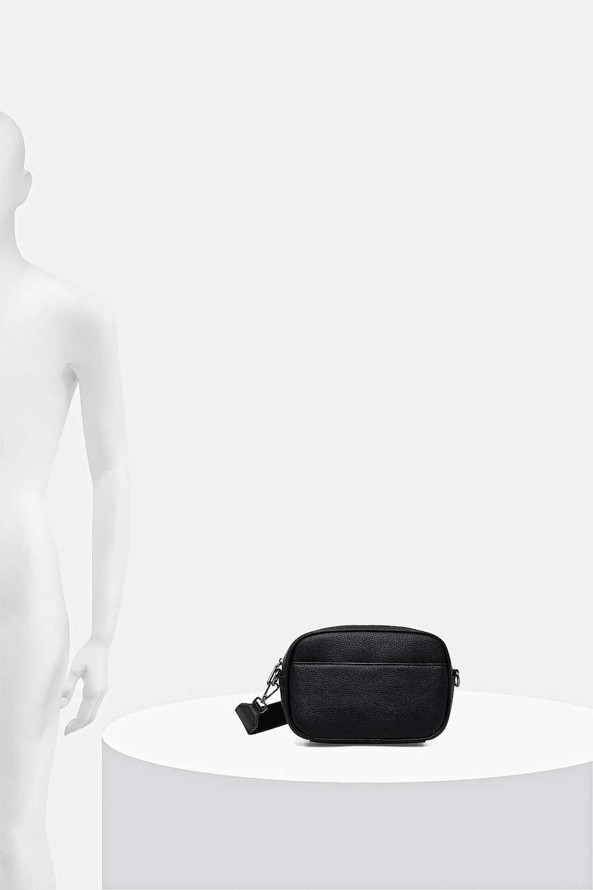 - Zapięcie na suwak. - Model z podszewką. - Nie mieści formatu A4. - Kieszonka wewnętrzna zapinana na suwak. - Z przodu kieszonka. - Torebka do noszenia w ręku lub na ramieniu. - Dopinany dłuższy pasek z regulacją. - Długość minimalna paska: 93 cm. - Długość maksymalna paska: 147 cm. - Głębokość: 5 cm. - Wysokość: 15 cm. - Szerokość u podstawy: 22 cm.