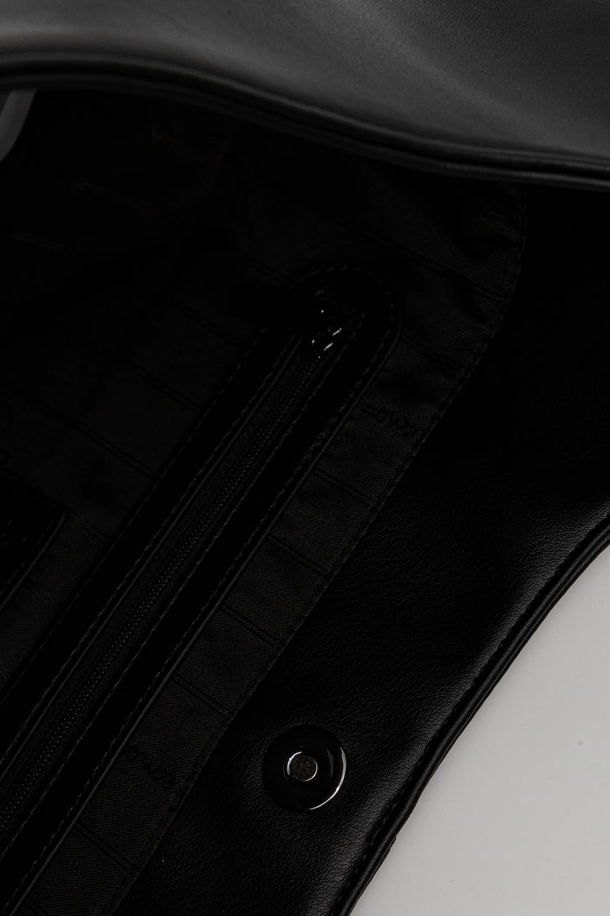 - Komora zapinana na magnes. - Posiada dwie kieszenie wewenętrzne: jedna wsuwana, druga zapinana na suwak. - Model z podszewką. - Mieści format A4. - Posiada regulowany uchwyt. - Głębokość: 2 cm. - Wysokość: 31 cm. - Szerokość u podstawy: 43,5 cm. - Maksymalna długość uchwytu: 87 cm. - Minimalna długość uchwytu: 53 cm.