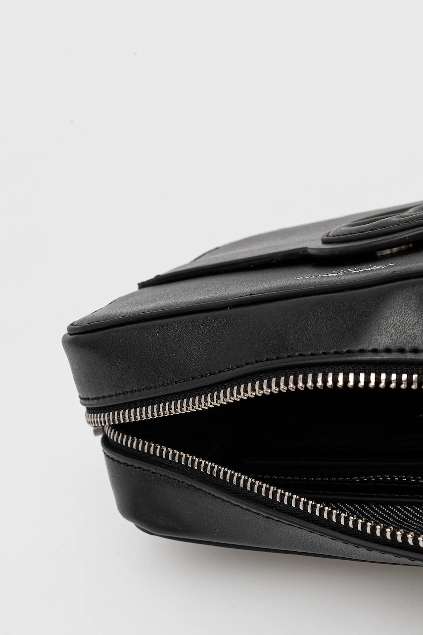 - Zapięcie na suwak. - Model z podszewką. - Nie mieści formatu A4. - Kieszonka wewnętrzna zapinana na suwak. - Z przodu kieszonka. - Torebka do noszenia w ręku lub na ramieniu. - Dopinany dłuższy pasek z regulacją. - Długość dopinanego paska: 133 cm. - Głębokość: 6 cm. - Wysokość: 13 cm. - Szerokość u podstawy: 19 cm.