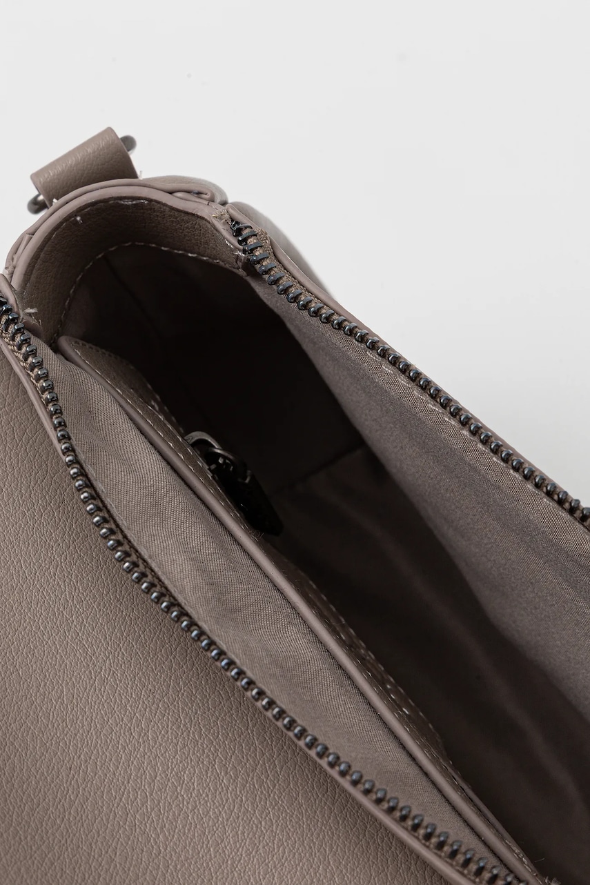 - Zapięcie na suwak. - Klapa zapinana na magnes. - Nie mieści formatu A4. - Posiada odpinany uchwyt i odpinany pasek z regulacją. - Model z podszewką. - Kieszonka wewnętrzna zapinana na suwak. - Długość minimalna paska: 112 cm. - Długość maksymalna paska: 122 cm. - Długość uchwytu: 52 cm. - Głębokość: 8 cm. - Wysokość: 15 cm. - Szerokość w najszerszym miejscu: 21 cm.