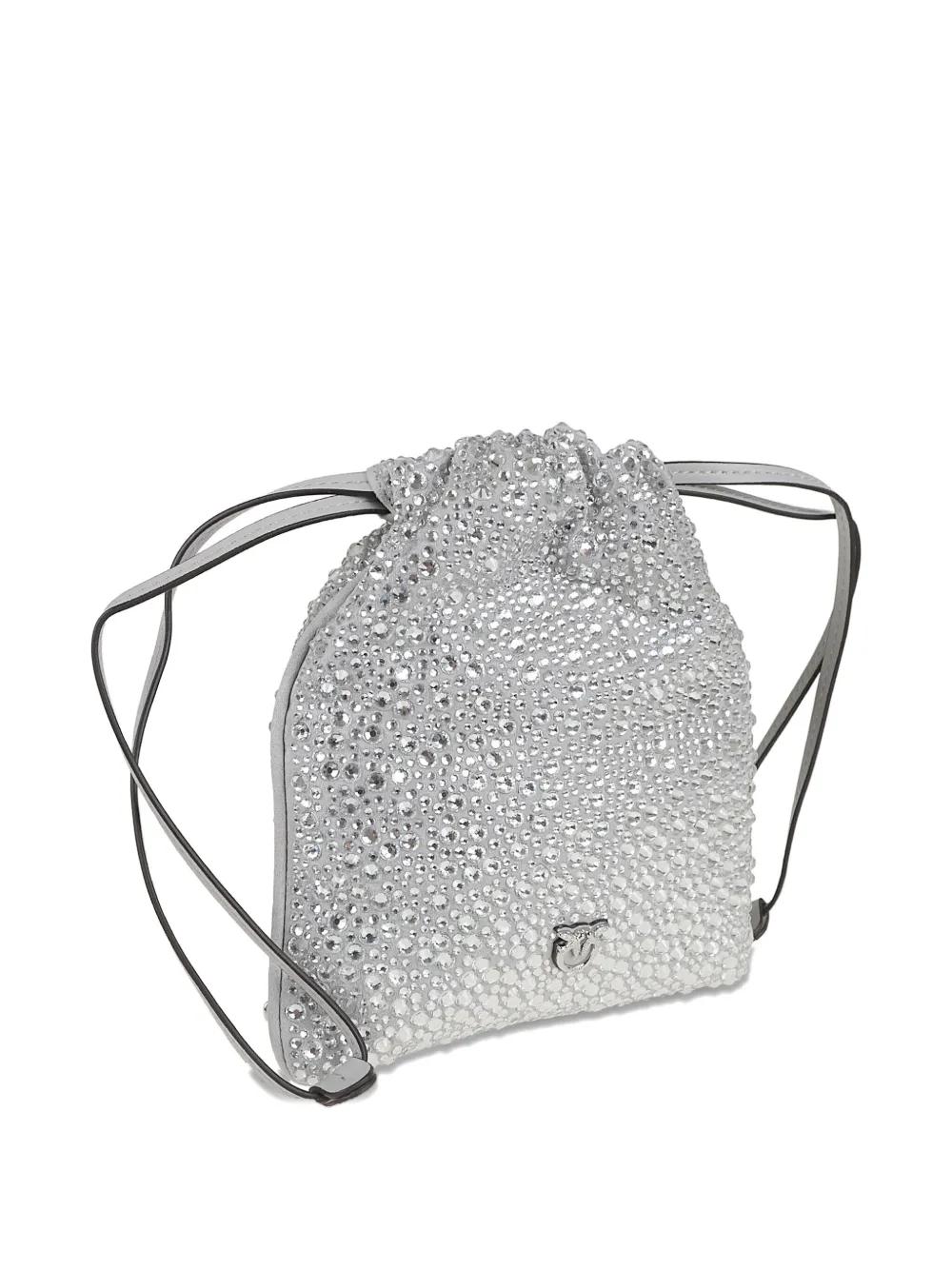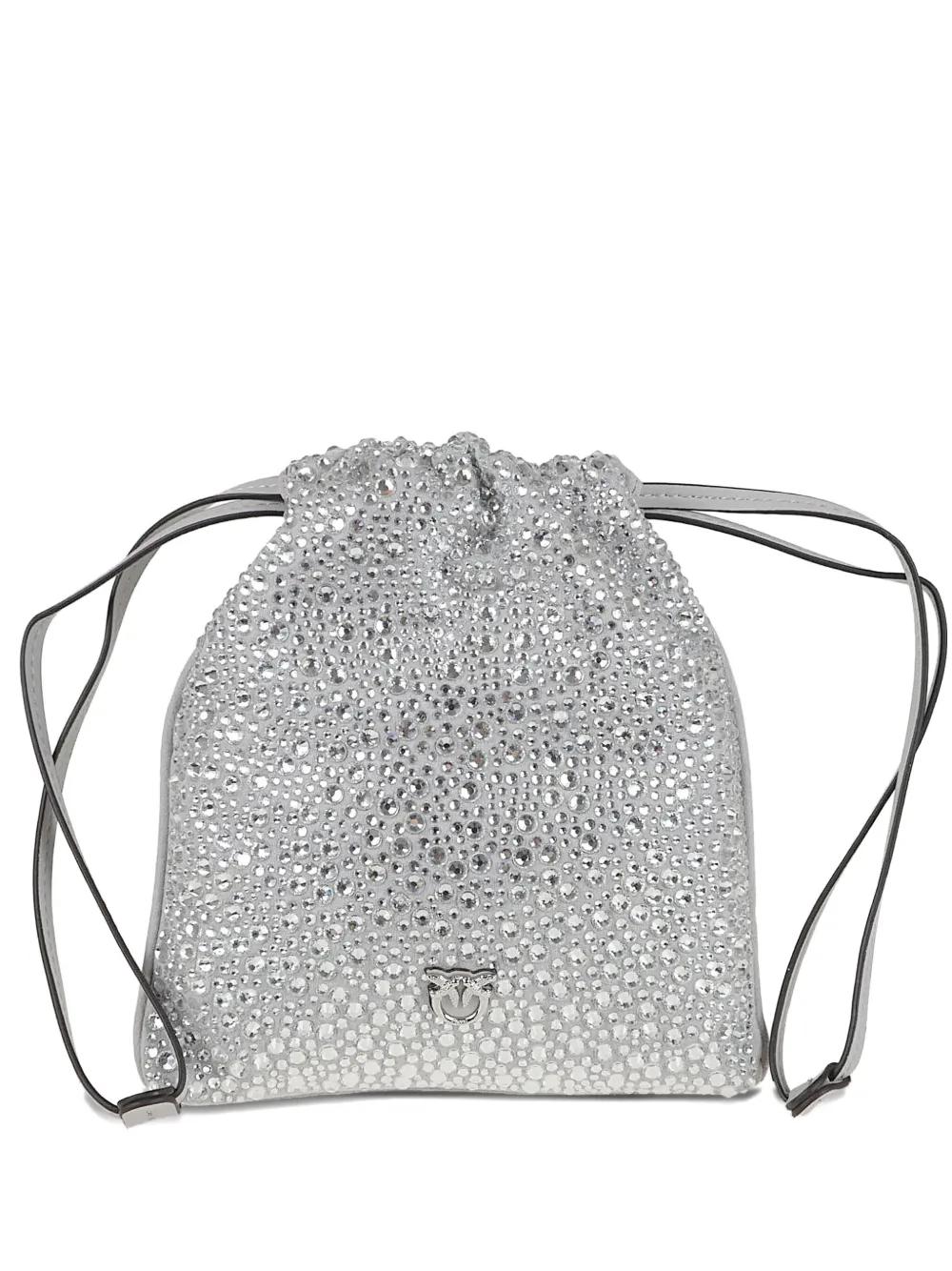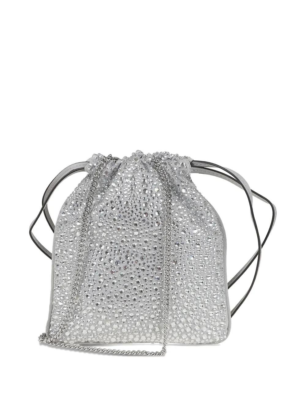 silver drawstring fastening top handles chain shoulder strap logo detail