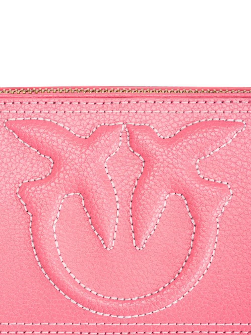 rose pink leather grained texture embossed logo to the front leather and chain-link shoulder strap top zip fastening two zip-fastening compartments internal slip pocket full lining