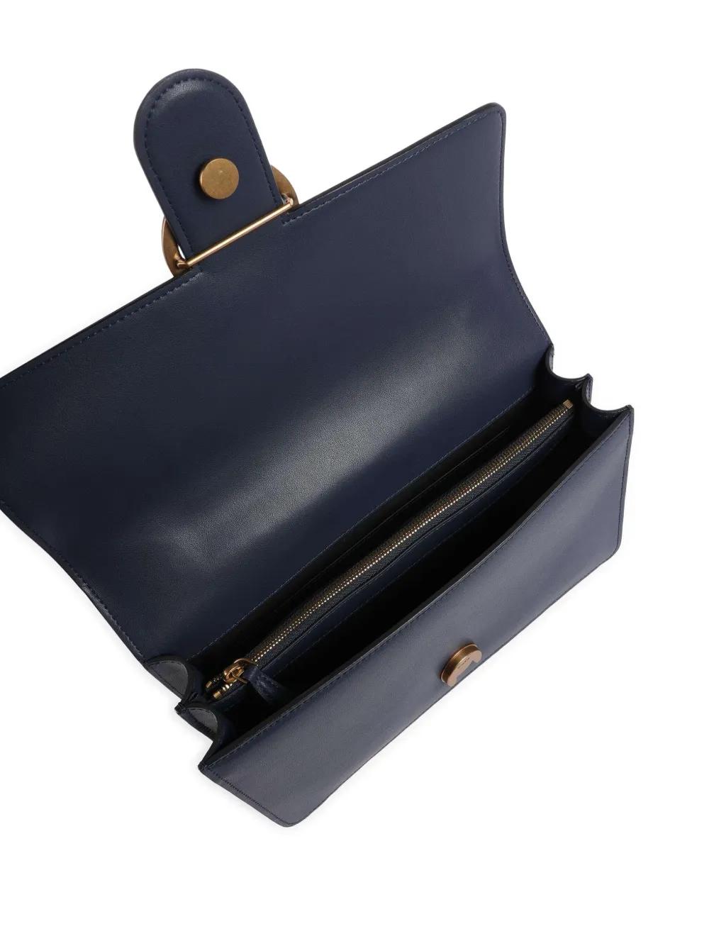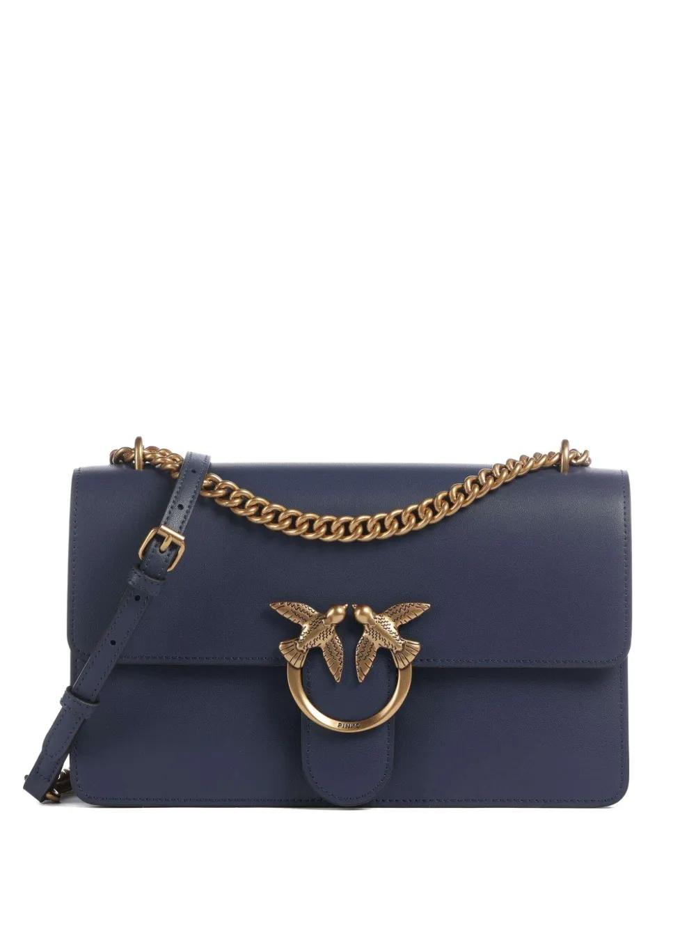 dark blue leather construction Love Birds clasp chain strap flap closure