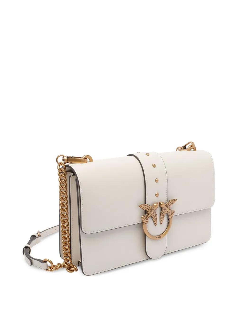 PINKO Classic Love One Simply bird-embellished studded shoulder bag - White