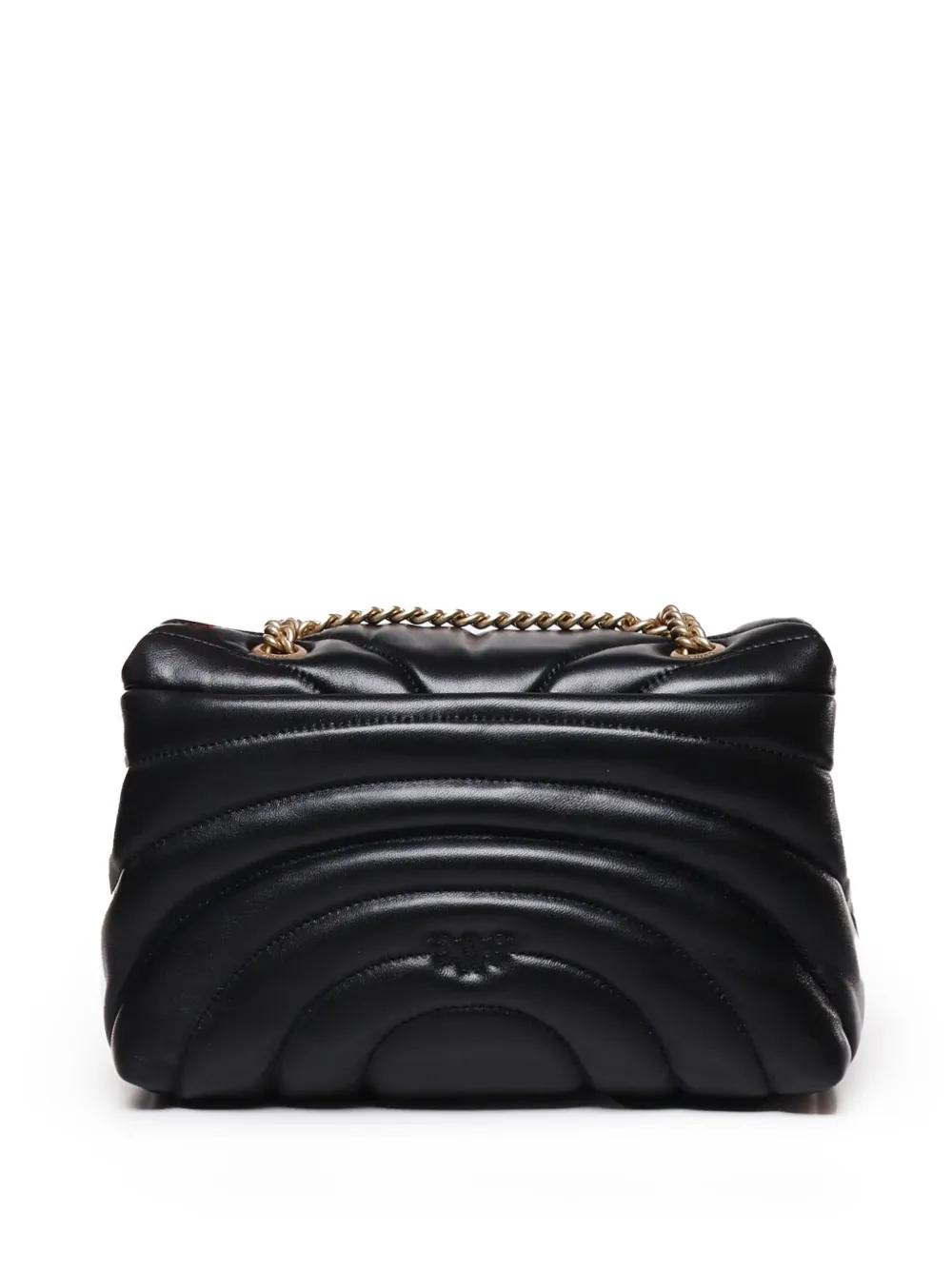 black calf leather quilted foldover top with magnetic fastening sliding chain-link shoulder strap signature Love Birds buckle main compartment internal zip-fastening pocket