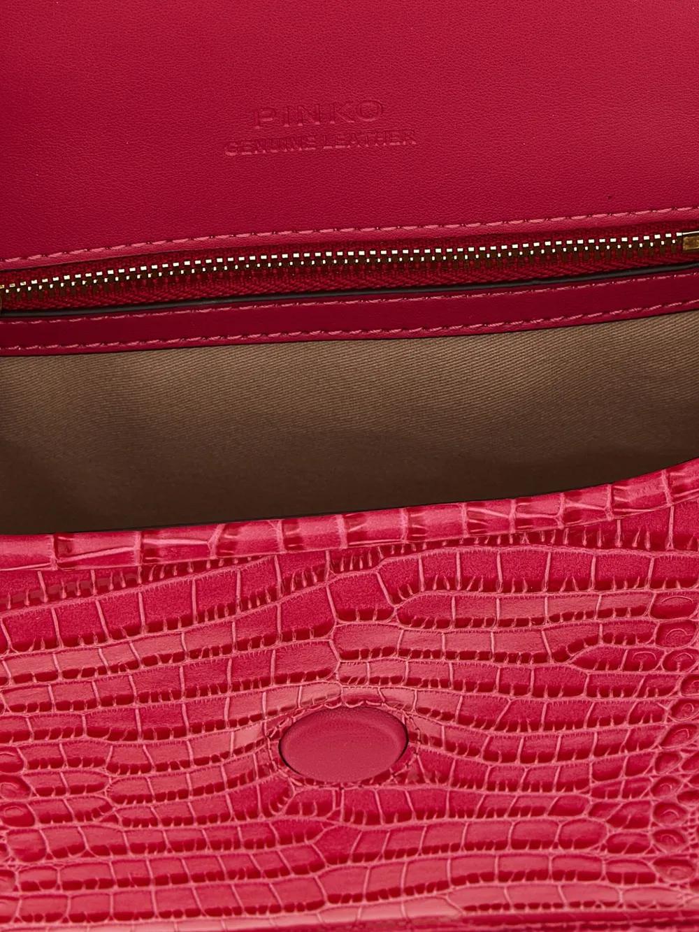 pink crocodile effect flap closure gold-tone hardware adjustable shoulder strap