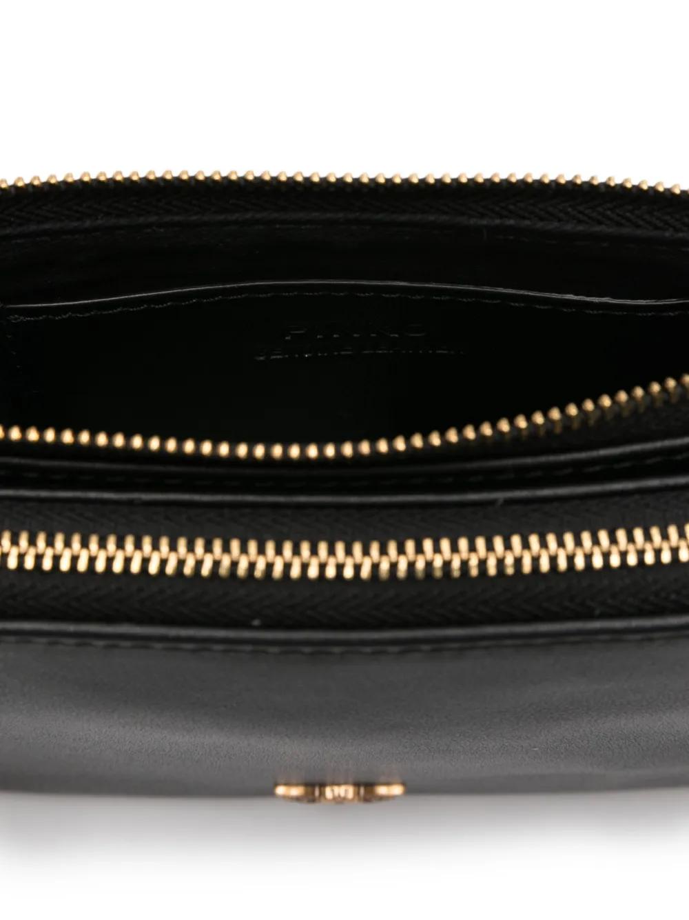 black calf leather double zip fastening gold-tone logo chain strap detachable leather strap