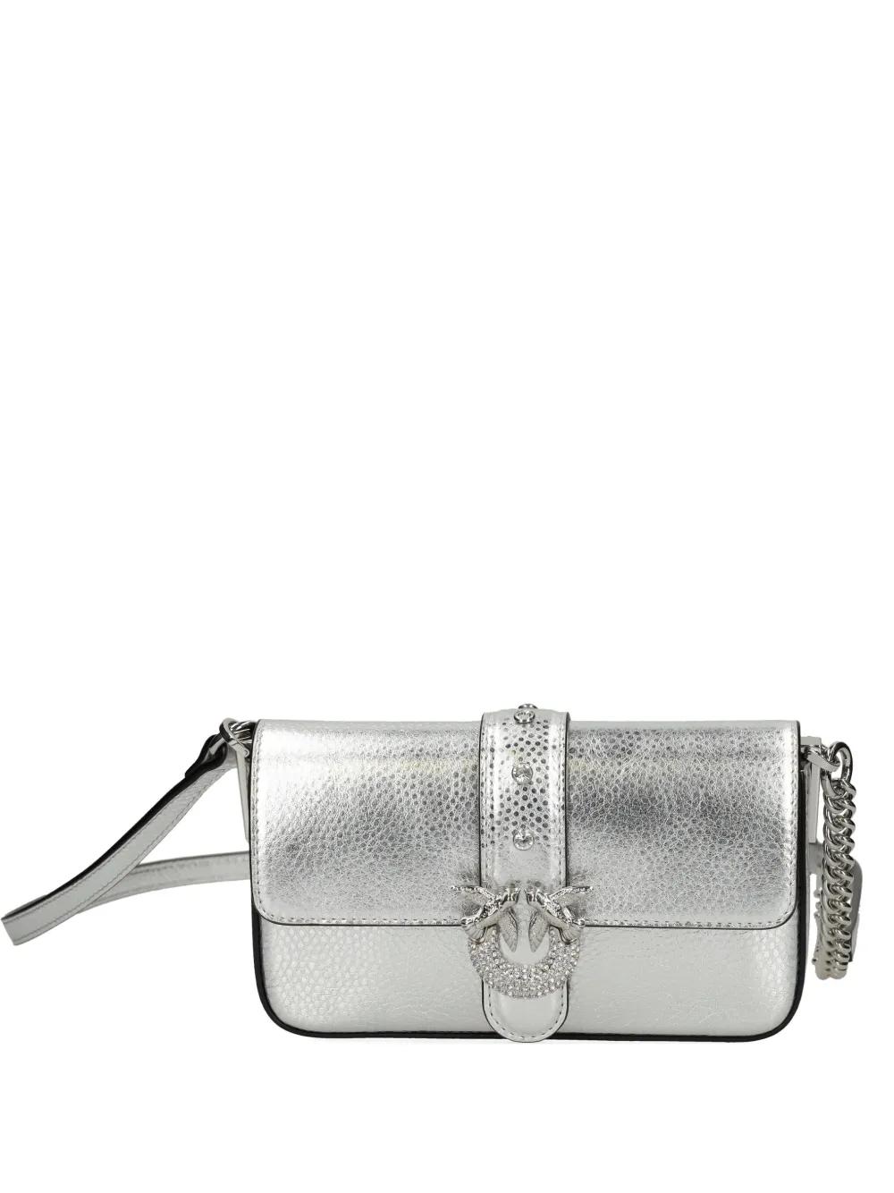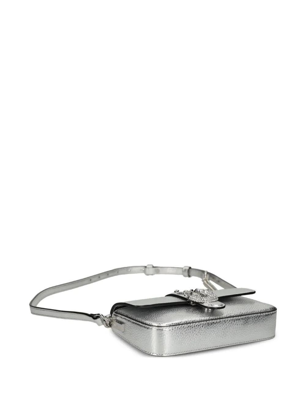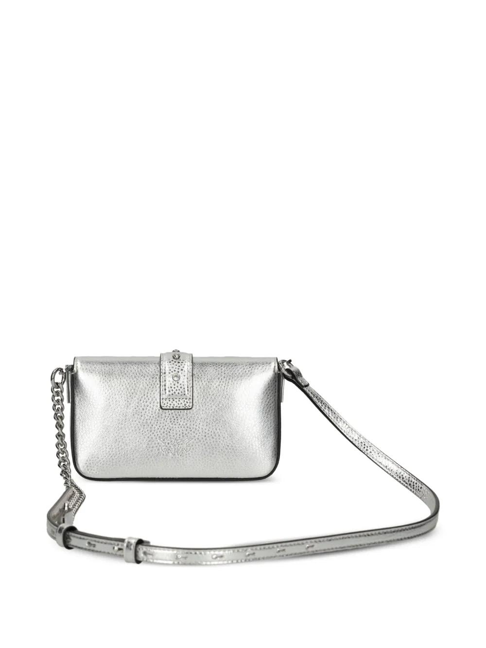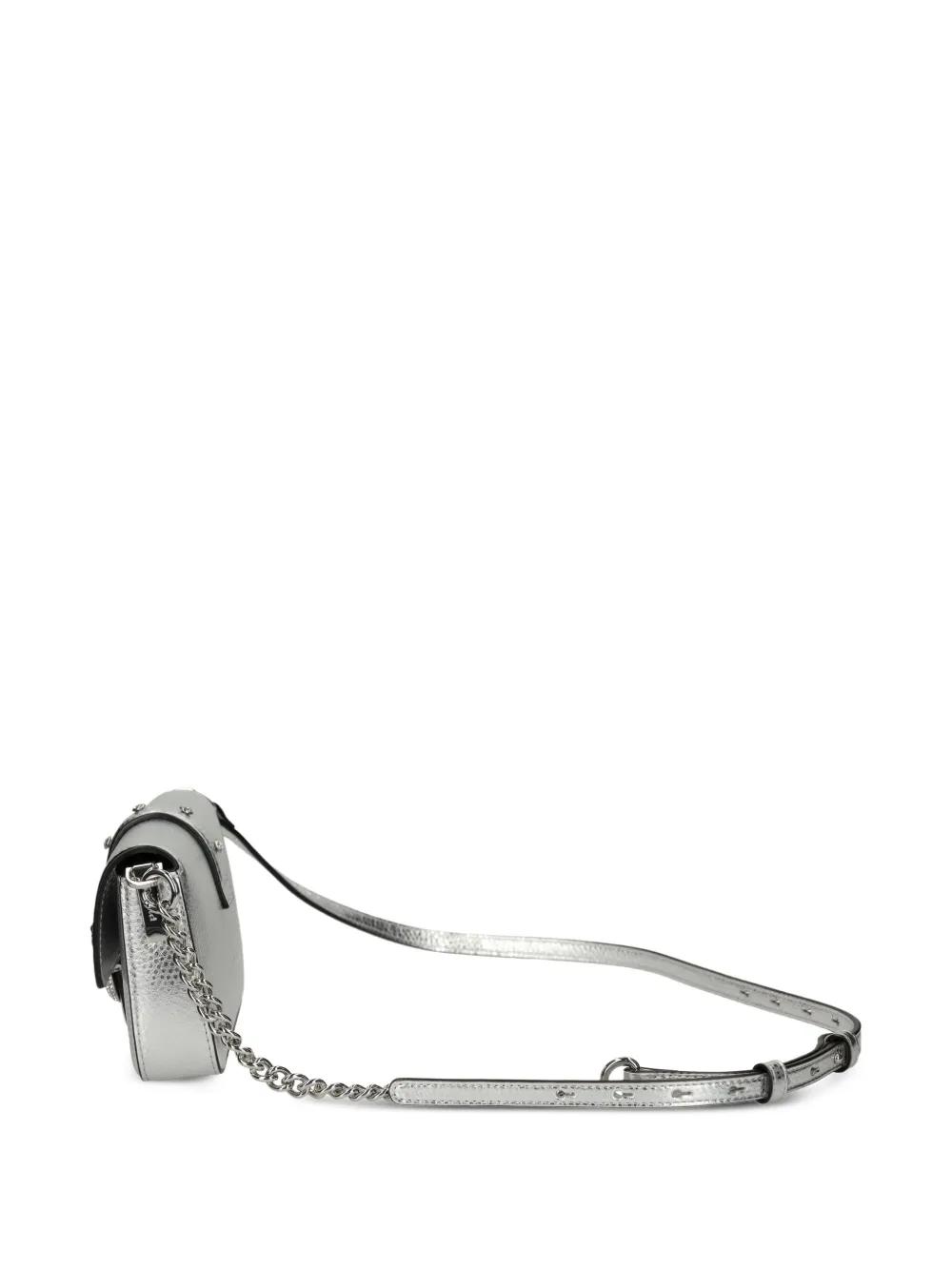 silver-tone grained texture embellished buckle chain detail adjustable strap top flap