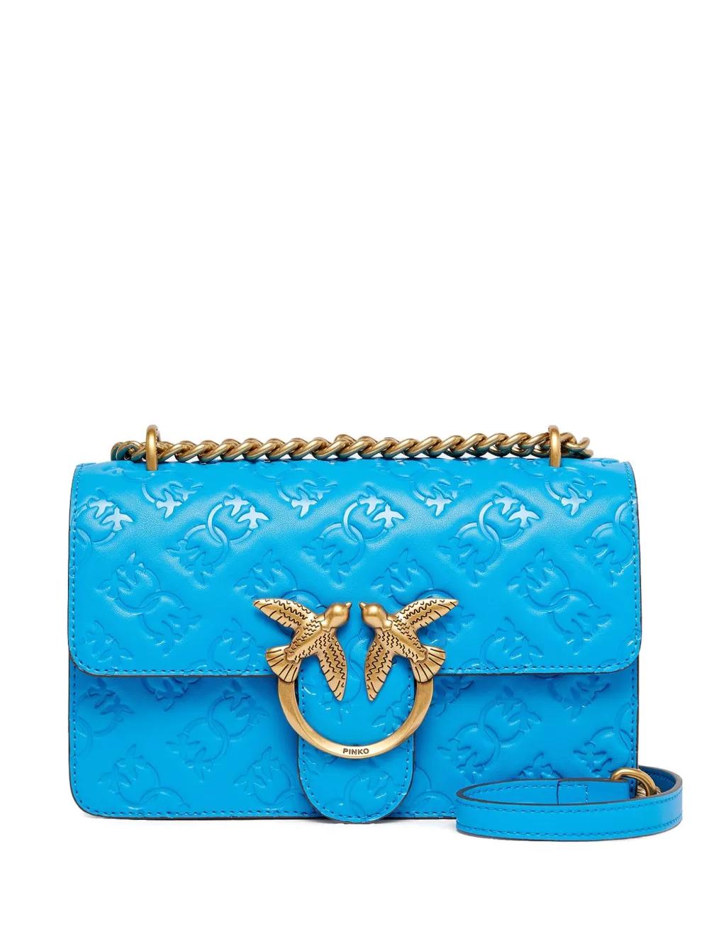 azure blue debossed pattern Love Birds clasp chain strap flap closure leather material